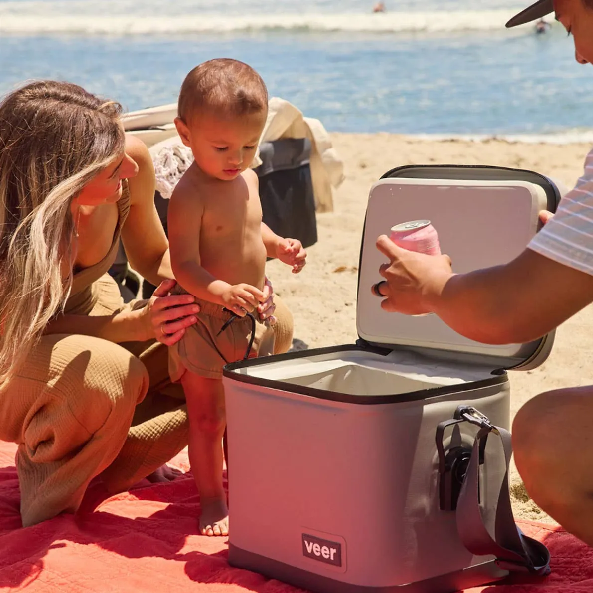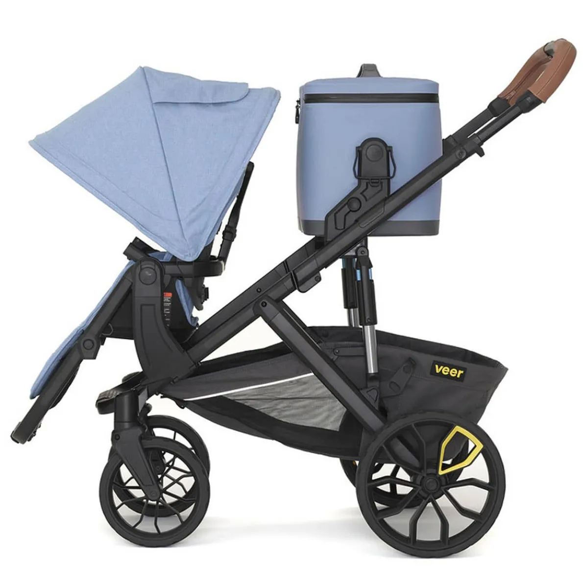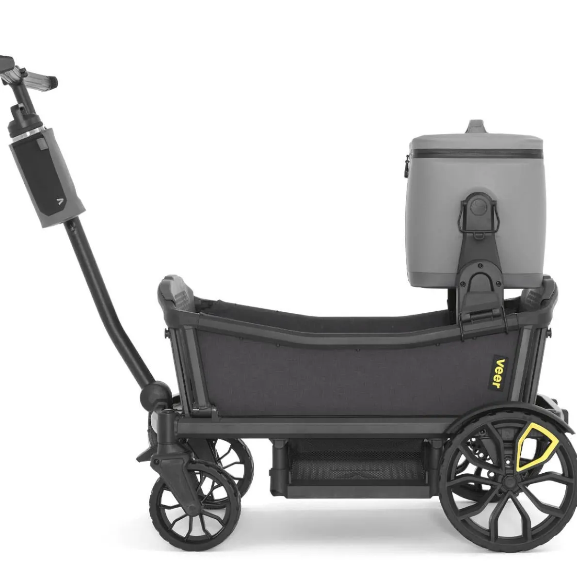 Triple the size of the Lunch Cooler, this 18 liter soft cooler is large enough to pack multiple meals, snacks, and drinks for the entire family, yet lightweight and easy to carry by its handle or padded shoulder strap. Veer’s patented quick release Switchback hubs allow you to quickly snap onto &Roll, &Jog, &Bike, &Chill or Cruiser and snap off by lifting the shoulder strap or handles. Side handles lock the cooler in place when flipped down, and unlock when flipped up.