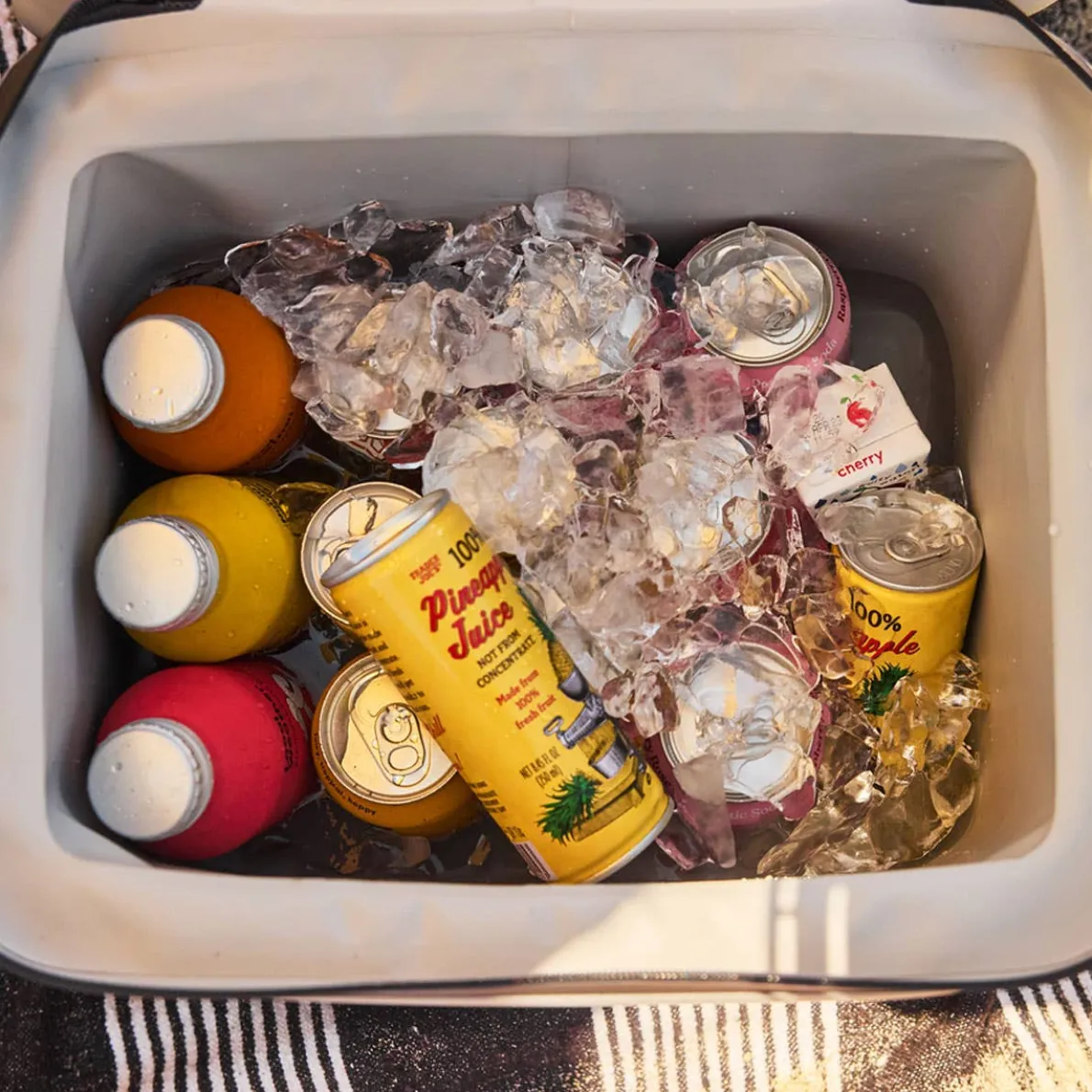 A welded interior with no stitching and thick closed-cell foam insulation will keep ice for up to 72 hours, ensuring cold goods and fresh snacks for days on end, while warm goods will stay hot and ready. Made from Veer DryTech – a durable, TPU coated fabric that is waterproof as well as stain, puncture, mold and mildew resistant. This Day Cooler is durable enough to stand up to the elements and easy to wash clean.