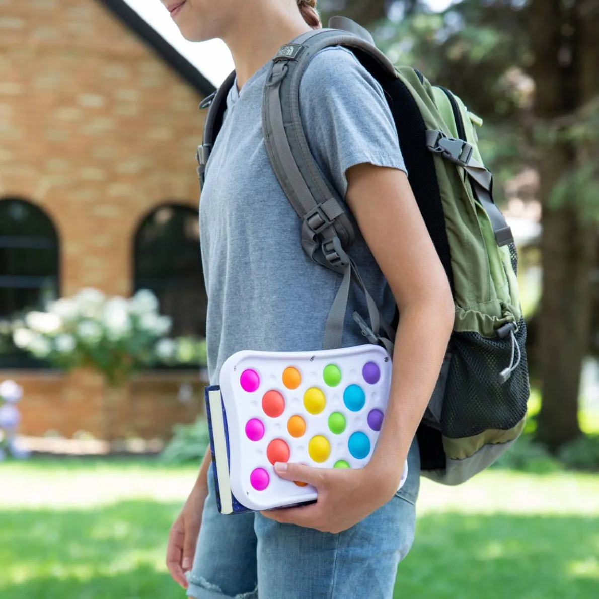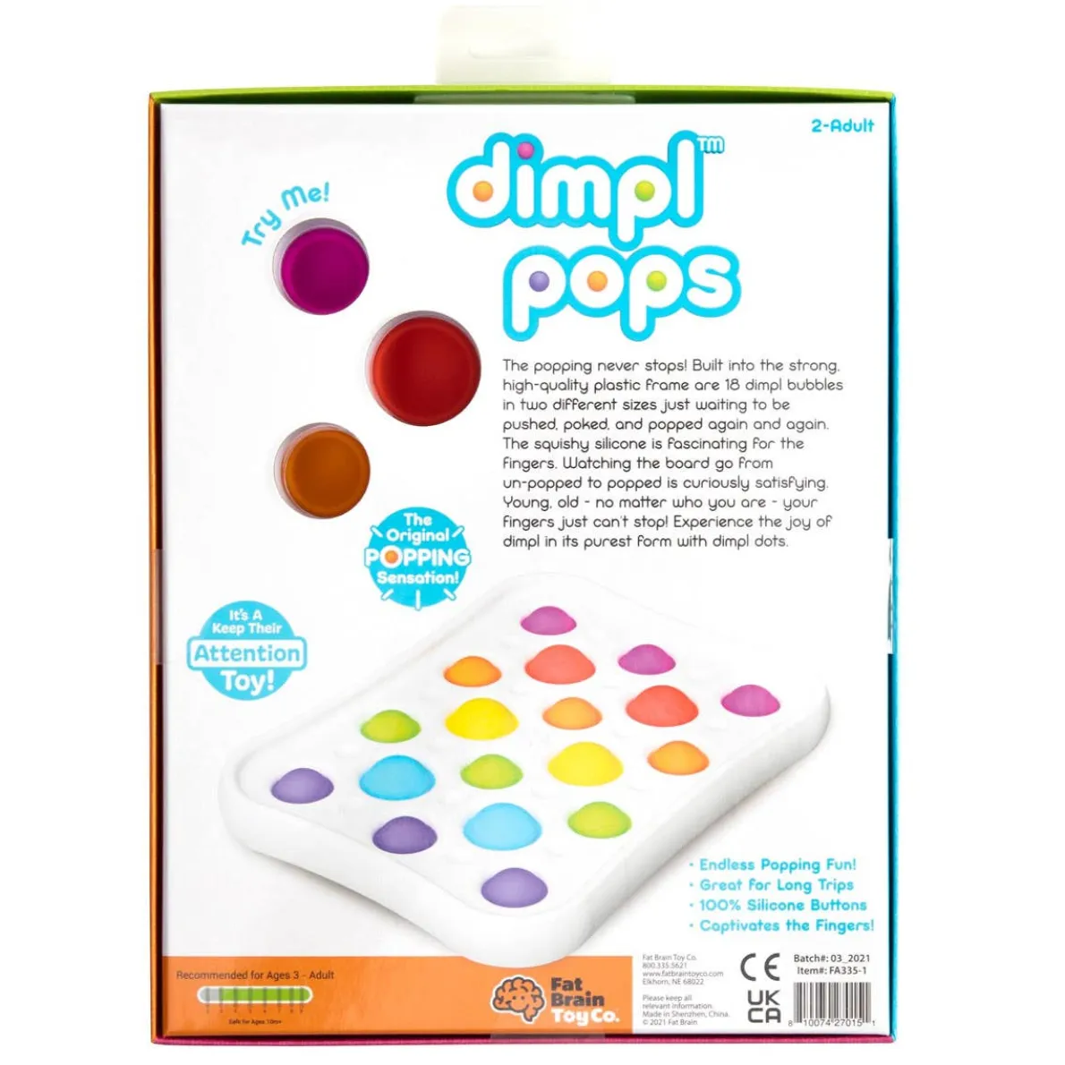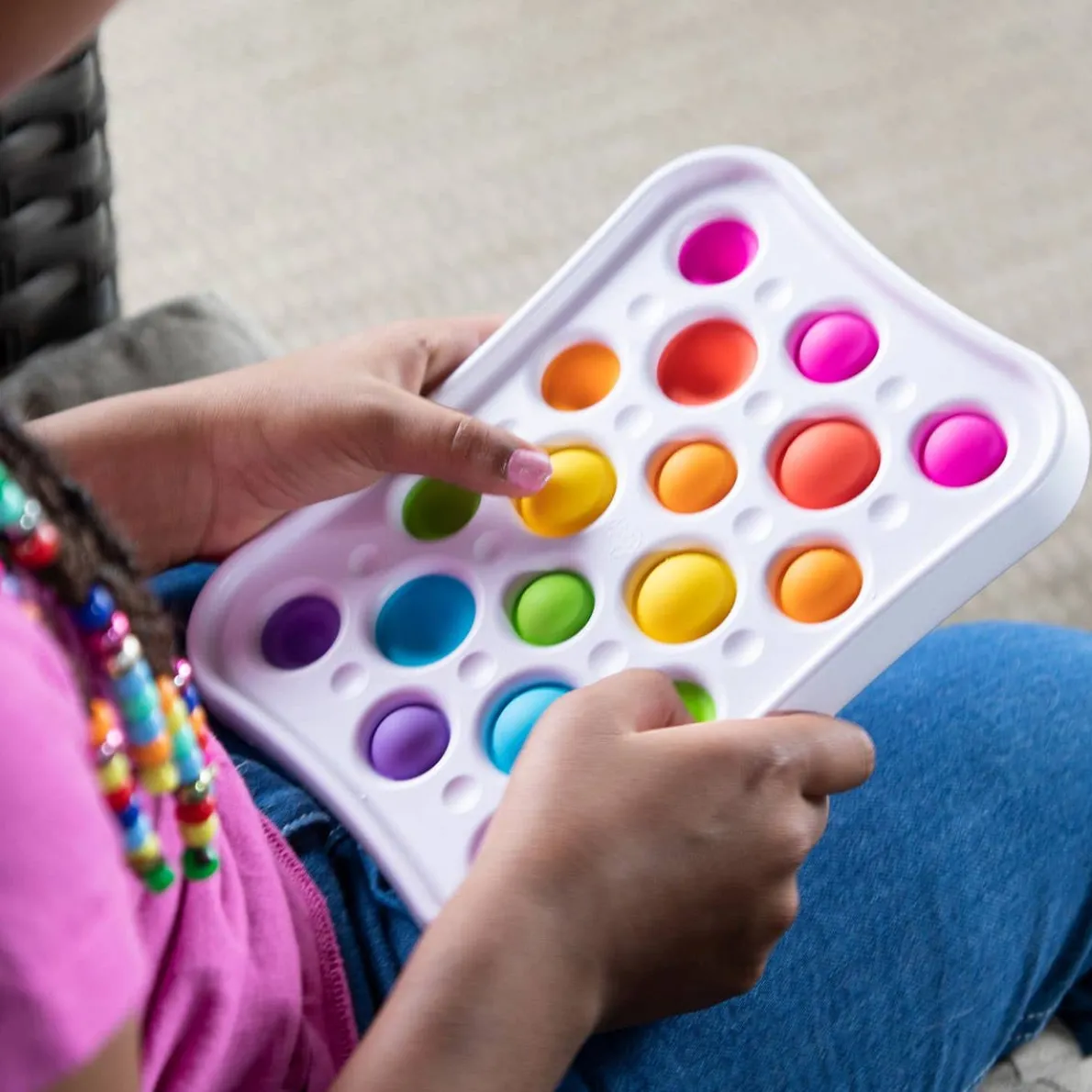 Built into the strong, high-quality plastic frame are 18 dimpl™ bubbles in two different sizes just waiting to be pushed, poked, and popped again and again.