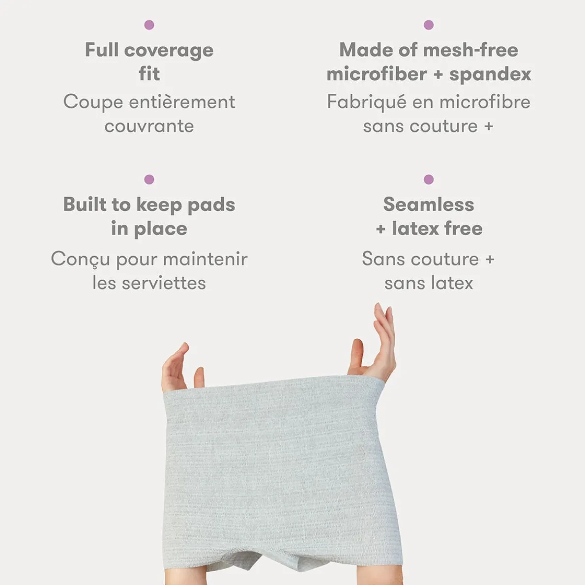 Mesh-free, mess-free recovery wear that stretches even more than you have. Soft, seamless and breathable to keep pads (and everything else) in place, without squeezing or pulling. SET INCLUDES: 8 boyshort briefs.