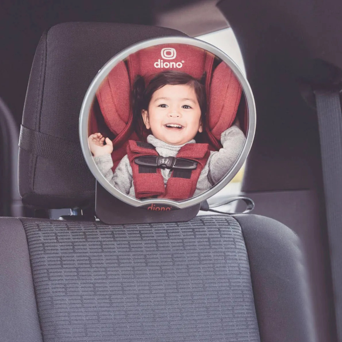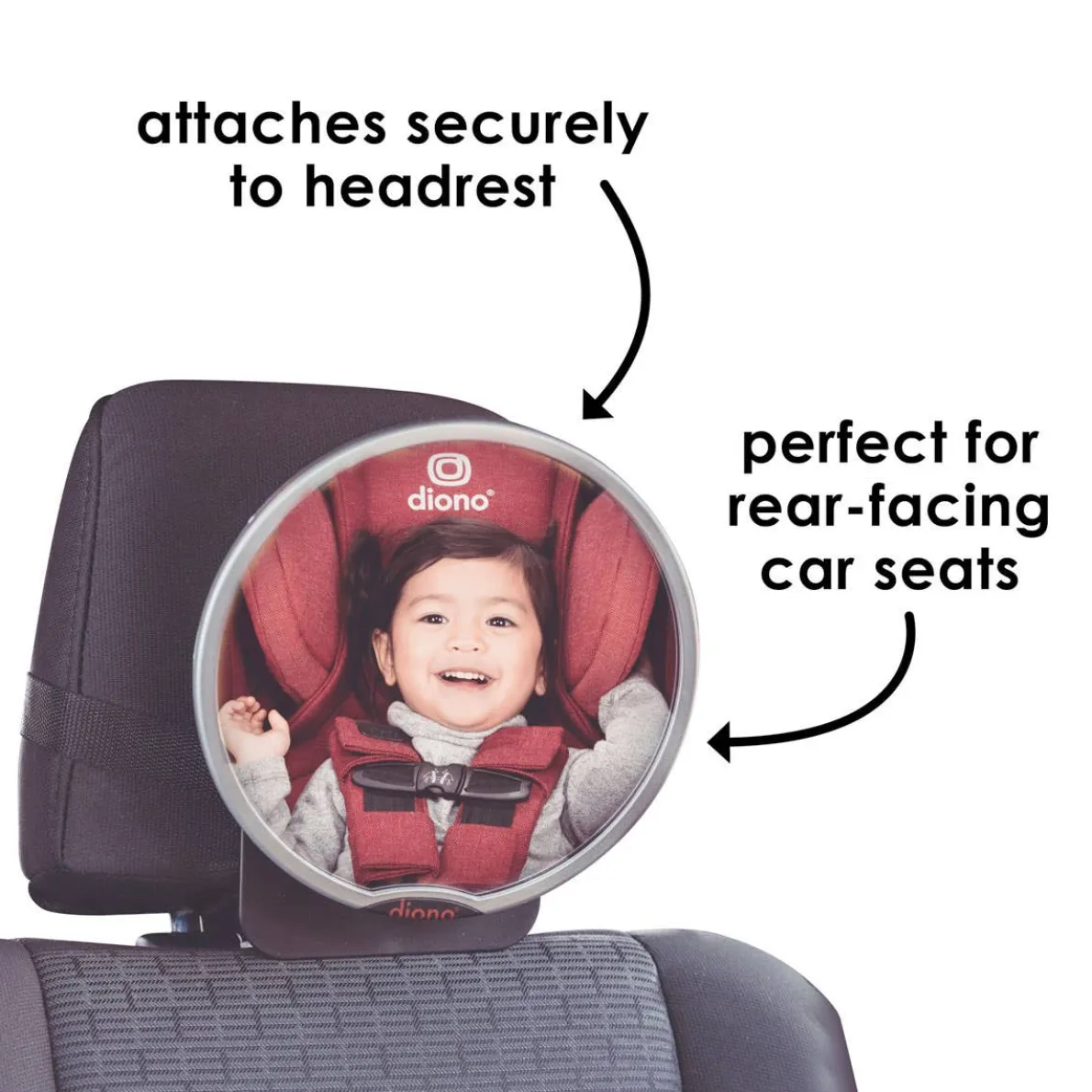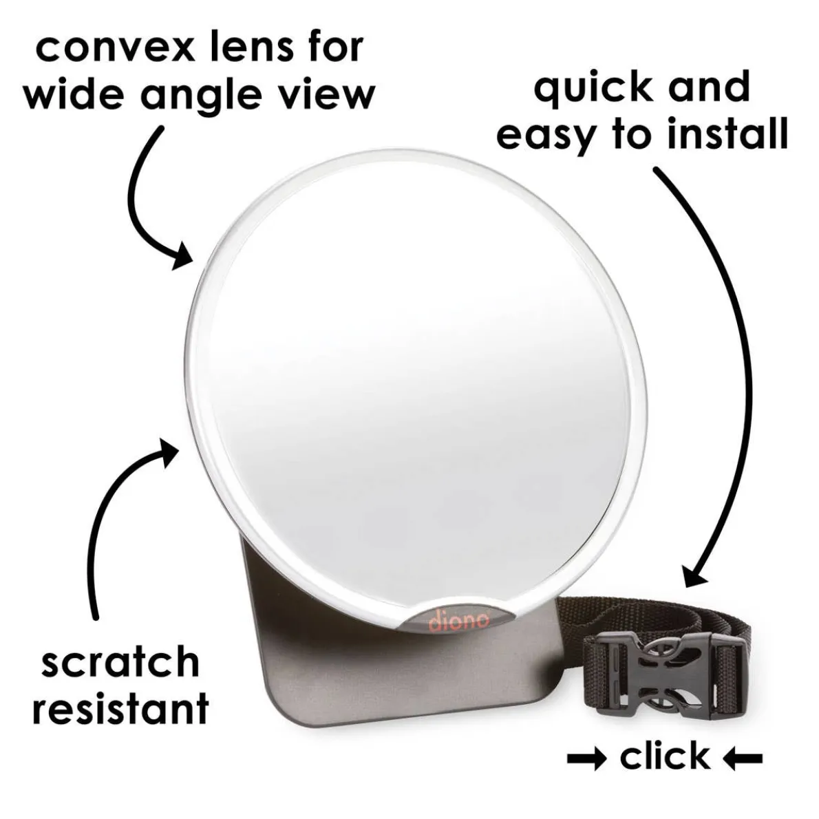 The Diono Easy View™ is the original 360-degree rotating mirror, lovingly engineered with you the parent in mind. We know you want to keep an eye on baby but drive safely at all times. With the Easy View™ mirror, you’ll have peace of mind knowing you can take a swift glance to the back seat while keeping your eye on the road. The unique 360-degree and pivot mechanism allows you to pivot the large, crystal clear reflection mirror so you can see baby from any seating position. The adjustable straps and back panel allow Easy View™ to be attached securely and easily to any head rest without blocking rear visibility. EVA foam padding on the back panel protects upholstery from any scratching and maintains the mirror at the correct angle even over bumps. And of course, like all Diono mirrors Easy View™ has been made with shatterproof materials and crash tested for added safety.