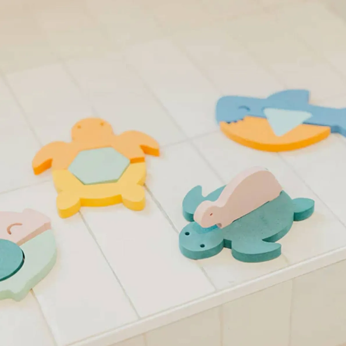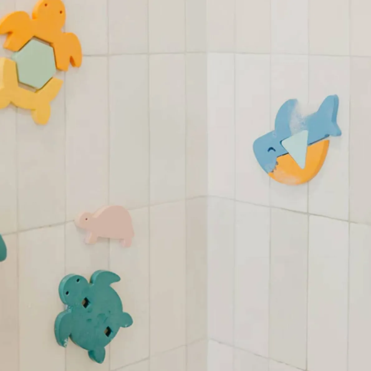 Your little one will love playing with these fun foam characters. From the water to the wall, they float in the tub or stick to smooth surfaces when wet. The puzzle pieces help your child learn as they play, developing hand-eye coordination and problem solving skills. Complete the look with our Bath Toy Organizer for quick clean-up and easy storage (sold separately).