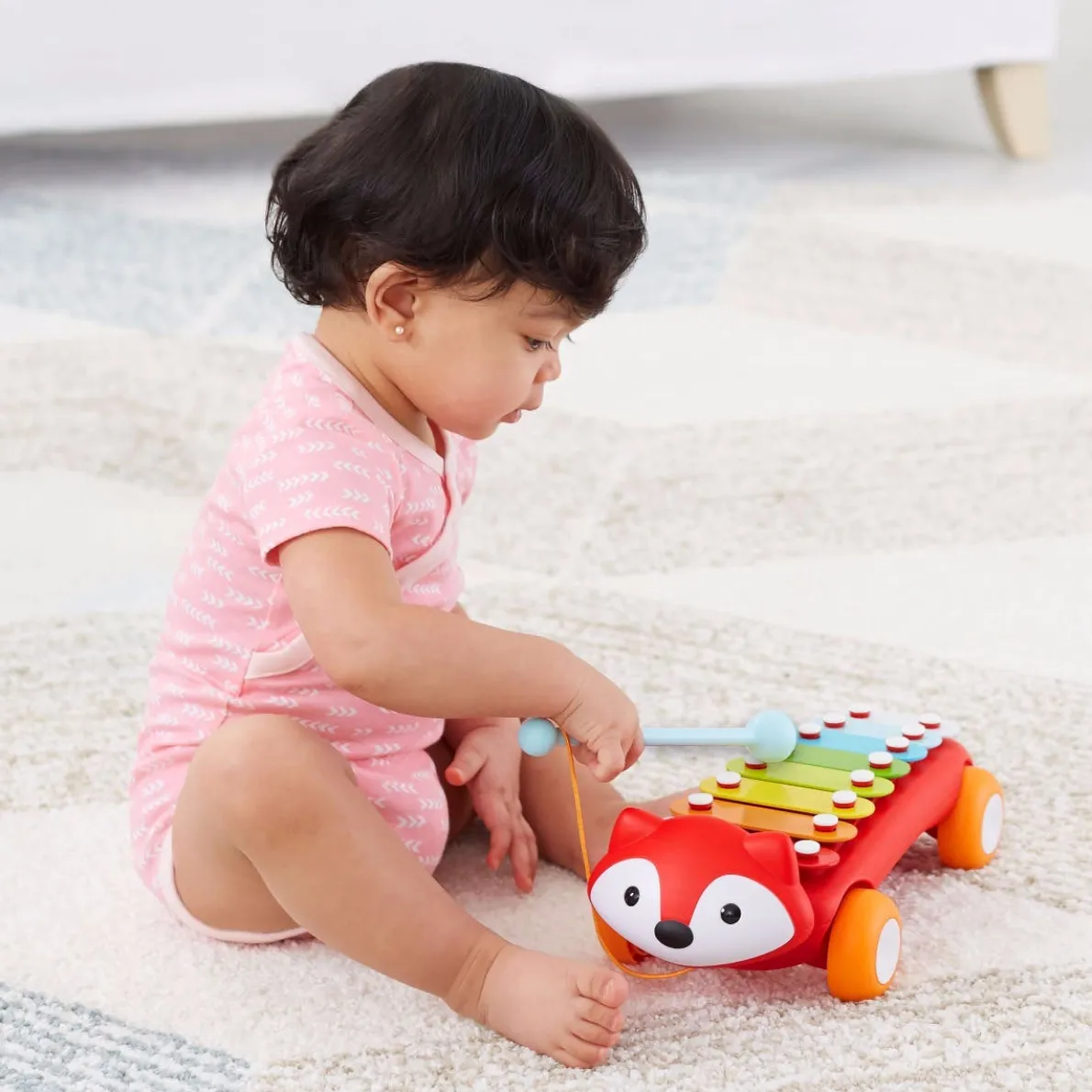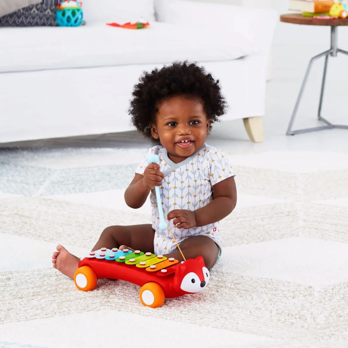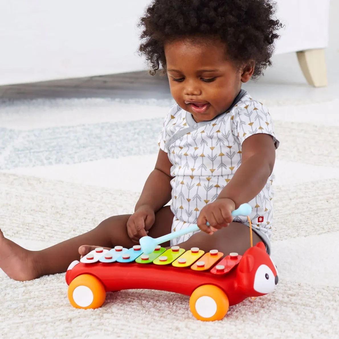 This adorable fox inspires early musical creativity with eight colorful keys. Skip Hop’s toy xylophone allows musical abilities to grow as babies tap each note and play their first tune. The mallet is attached so they can take their tunes wherever they go-and it won’t get lost!