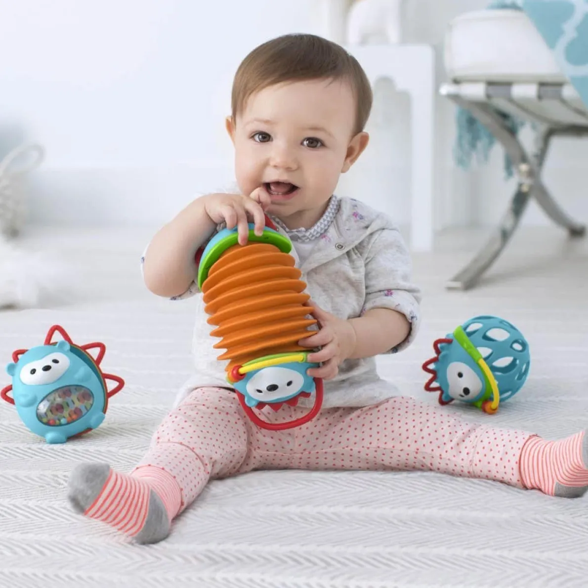 This whimsical woodland creature is sure to engage your little one’s imaginations with hours of musical play. Designed with easy-to-grab handles, it’s perfect for little hands. Your baby will delight in discovering a range of unique tunes as they push and pull the soft rubber accordion. This adorable character features vibrant colors, movable beads and rubberized details for teething.