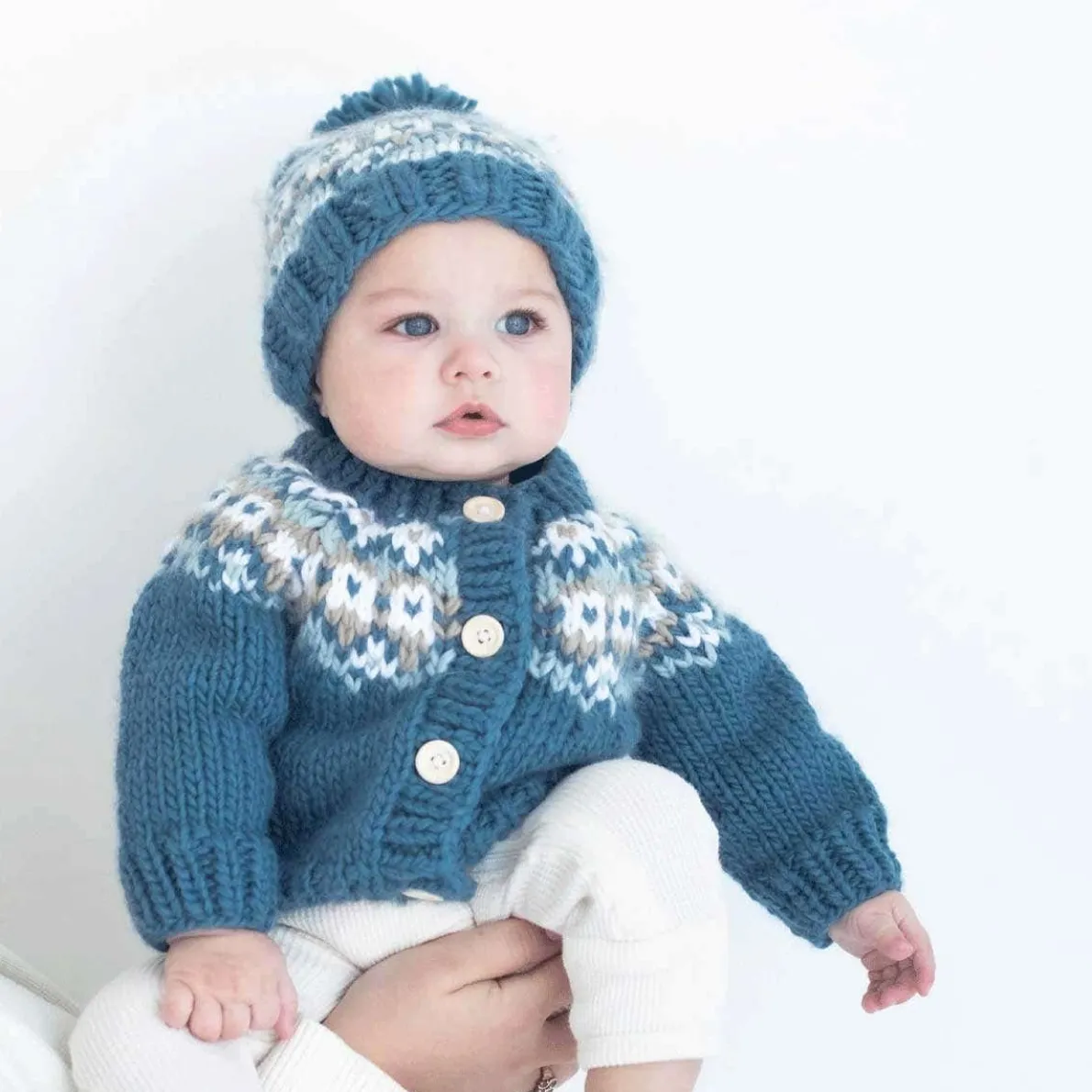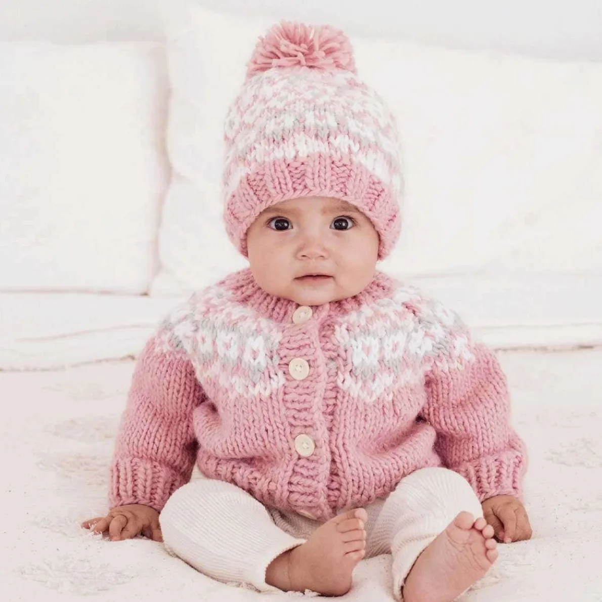 Transform your child’s winter wardrobe with Fairisle Cardigan Sweater. This sweater features a Nordic-inspired design in Pink, White and Grey in a cozy, thick knit. Complete the look with matching Fairisle Rosy beanie hat – the perfect gift for any little one.