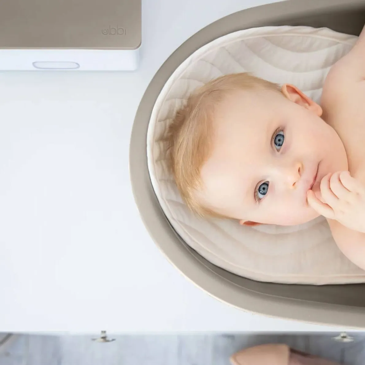 Elevate diaper duty with the Ubbi foam changing pad. Designed with comfort and functionality in mind, this contoured foam changing pad is soft for baby and makes diaper changing a breeze for everyone. It is equipped with a safety belt that allows baby to be securely strapped in, and non-skid rubber feet to prevent the pad from moving and to protect surfaces. The modern looking basket-shaped base is conveniently detachable for easy cleaning.