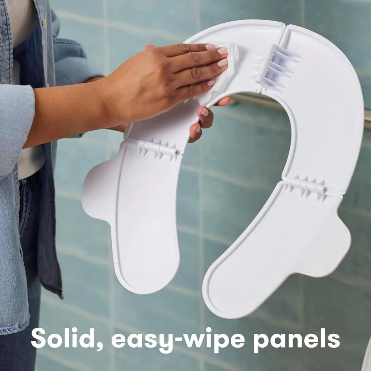 Potty training in the wild can be dirty work. The Fold-And-Go Potty Seat converts a germy adult-sized toilet into a clean, comfy commode for your kid. Its non-slip base gives them a steady perch while going, and flexible silicone handles mean you and your kid can keep your hands off any icky surfaces. Solid, easy-wipe panels won’t trap cr*p and it folds to fit in the included travel bag, so you all can get on with your business.