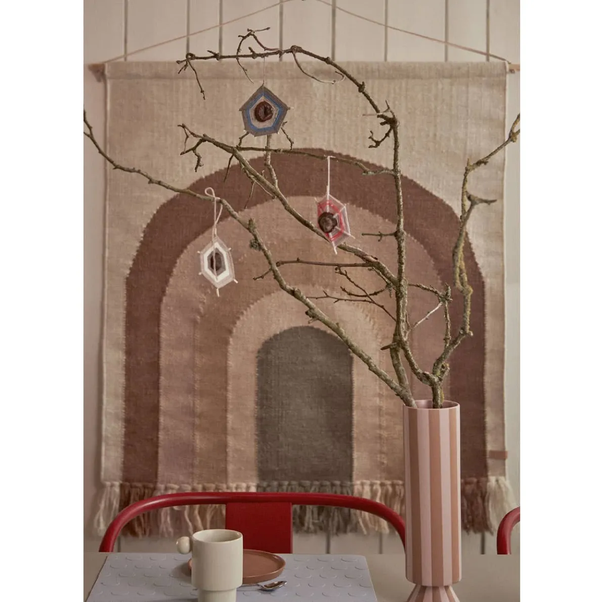The rug has a wooden stick for hanging purpose, which makes it ideal to use as a charming and colourful wall decoration.