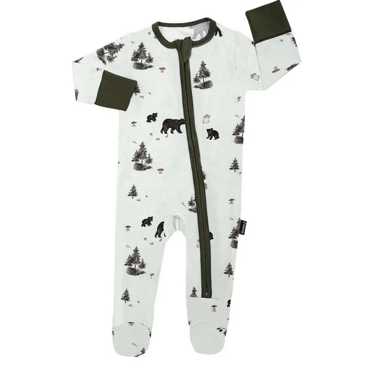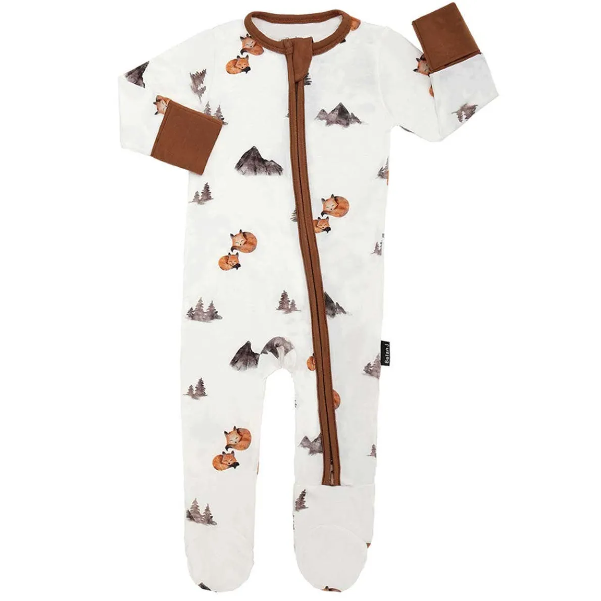 Footed sleeper made in buttery soft bamboo rayon for the perfect night sleep. Bamboo is very breathable and moisture wicking which makes it the ideal fabric for infant sleepwear. 2-way zipper closure makes for easy diaper changes while fold over cuffs* and chin guard keep baby safe from scratches and pinches. Sizes 6-12M & 12-18M have silicone grippers on soles to prevent slipping.