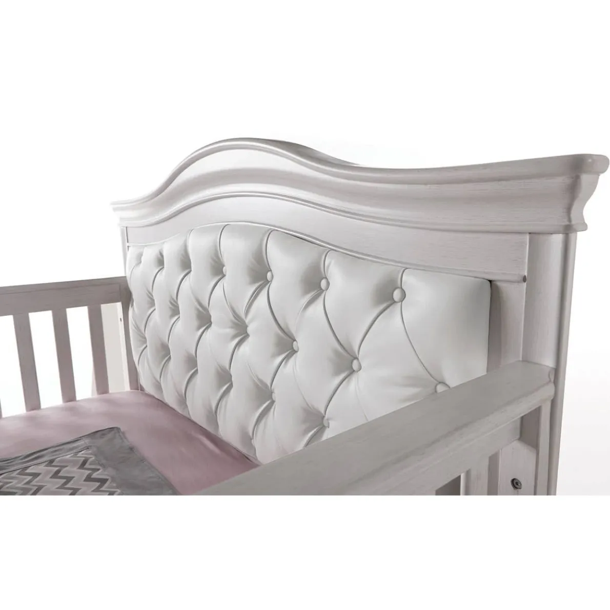Pali Diamante Forever Crib is a 4 in 1 crib: it converts to a Toddler Bed, to a Daybed and then to a Full-Size Bed. The toddler rail and the full-size conversion kits are sold separately. It is an elegant reflection of classic Italian design paired with a beautiful diamond tufted white vinyl panel tucked into the headboard. It�s crafted from select sustainable hardwood. Tested to meet or exceed all required US and Canada standards. GreenGuard Gold Certified.