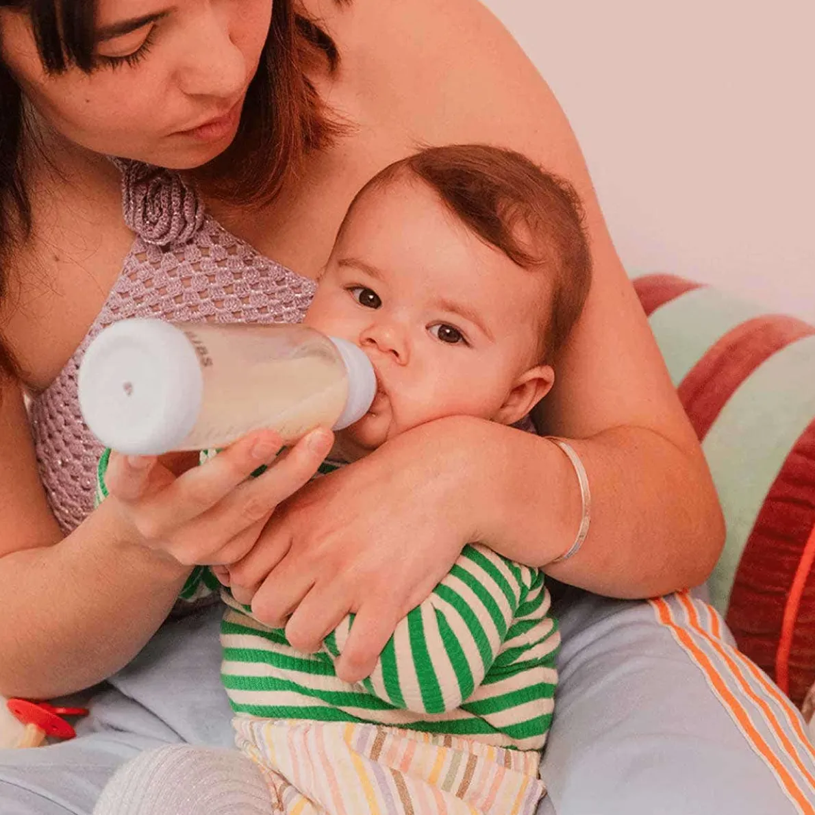 Ready to upgrade your feeding routine? BIBS’ Glass Baby Bottle offers a sleek, award-winning design with an anti-colic valve to reduce gas and reflux, and a breast-like nipple that eases the transition between breastfeeding and bottle feeding. Featuring a dishwasher-safe, durable glass base that maintains a like-new appearance over time, and spill-minimizing components for convenient feeds at home or on the go. The ultra-soft, hypoallergenic medical-grade silicone nipple is easy to sterilize, reinforced with ribbing for added durability, and includes an anti-slip texture for a secure latch. Comes with a slow-paced flow, with additional flow rates available as your baby’s feeding pace changes. BPA-free / Ages 0+