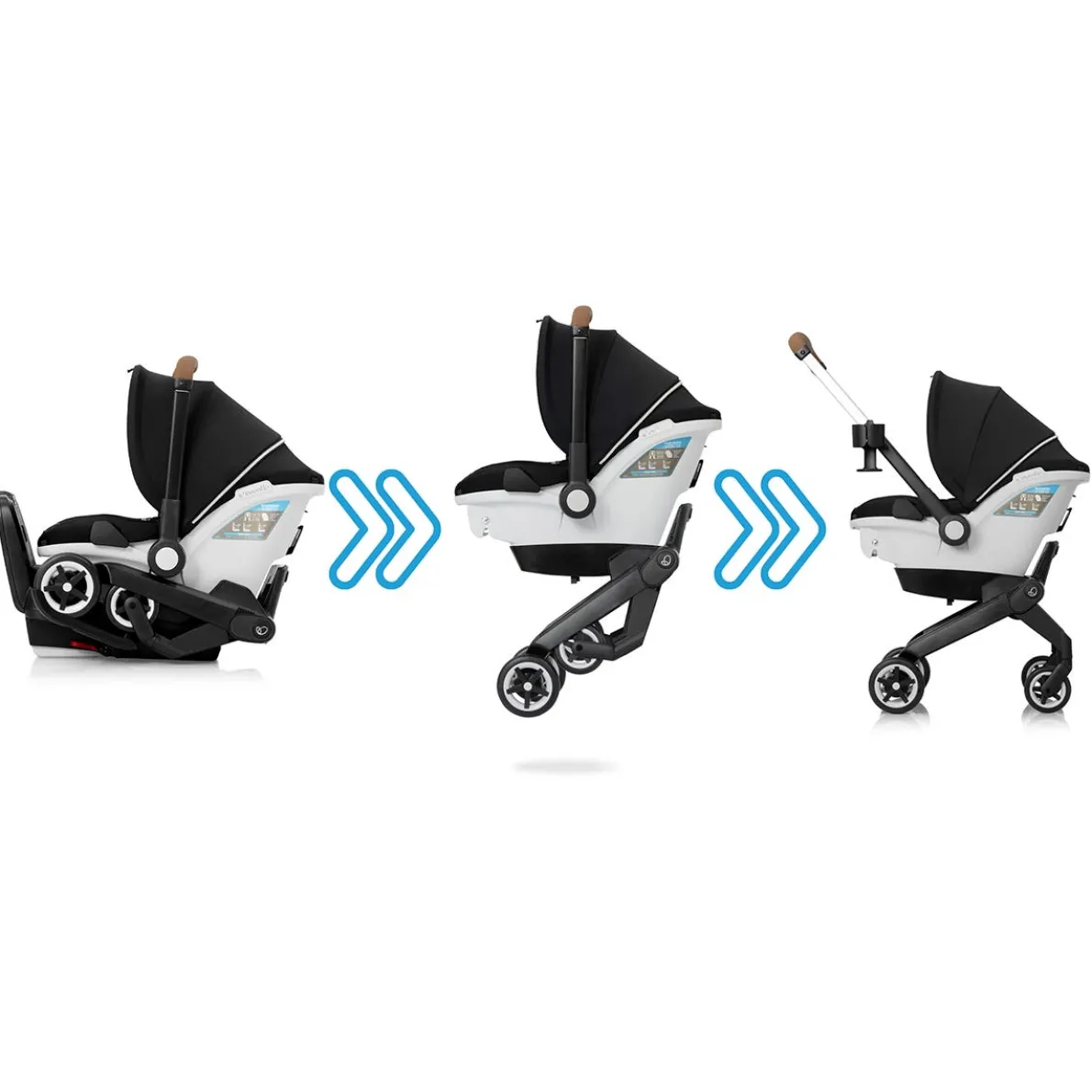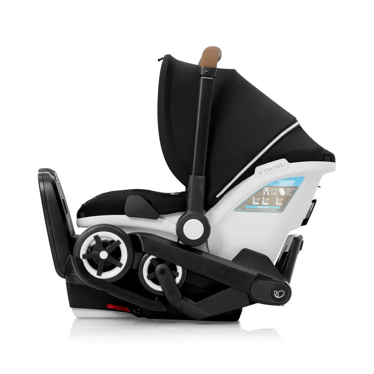 The Evenflo® Gold Shyft™ DualRide™ with Carryall Storage Infant Car Seat and Stroller Combo is a single piece of baby gear that Shyfts from infant car seat to stroller in one step, streamlining life on the go. Moving from car to sidewalk? Simply lift the carrier off the base, release the wheels and you’re rolling in no time. From backseat to street in a heartbeat! Maneuvering stairs? Retract the wheels, carry up/down steps, pop the wheels back down and stroll on. No struggling with multiple pieces of gear. No disturbing your little one. This car seat stroller combo makes every trip easier.
