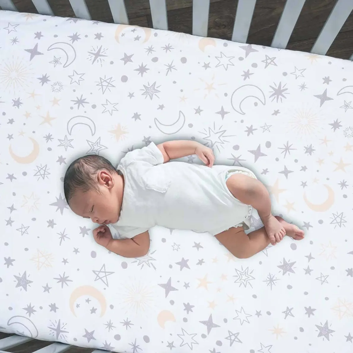 - Elastic all the way around ensuring a safe and secure fit on a standard size crib mattress