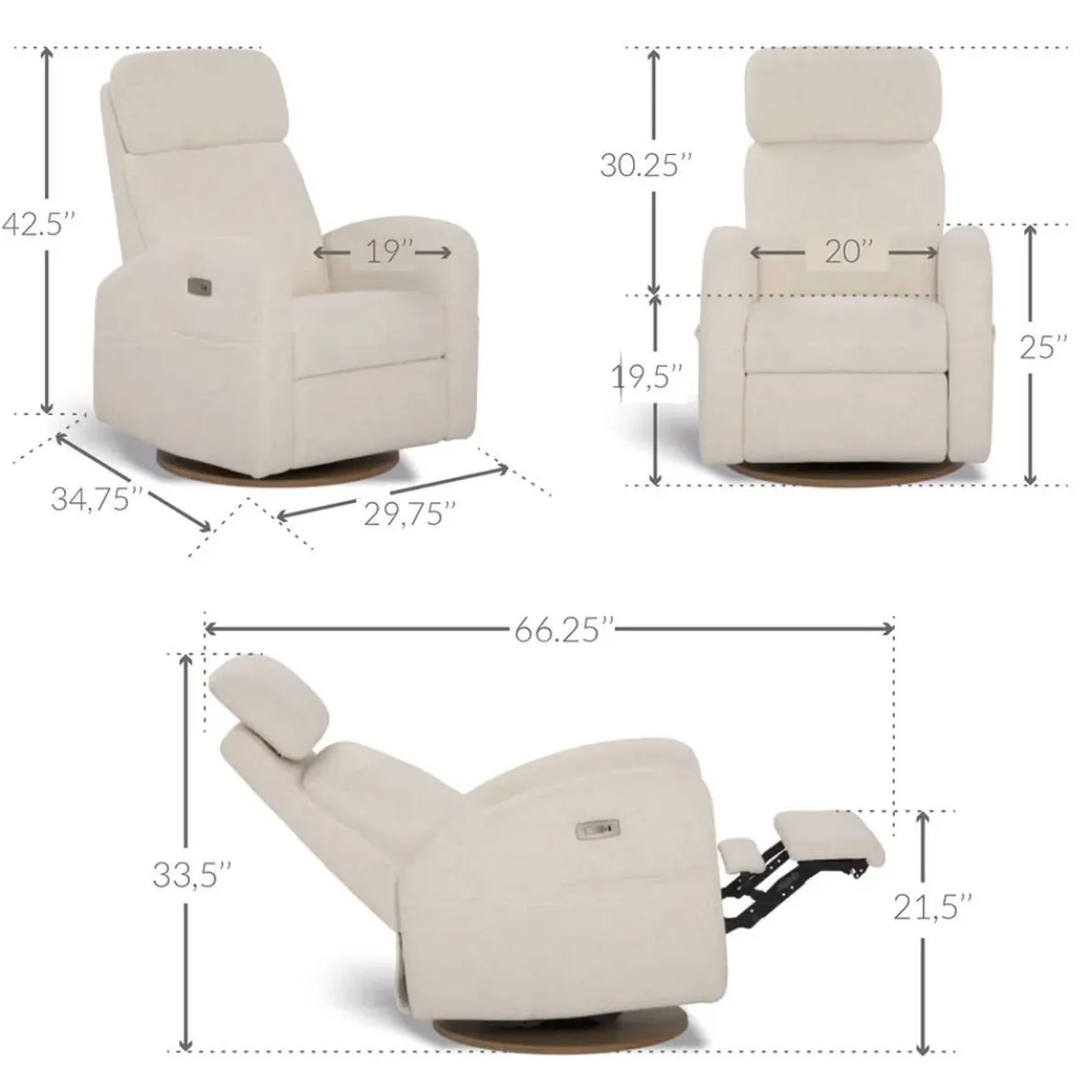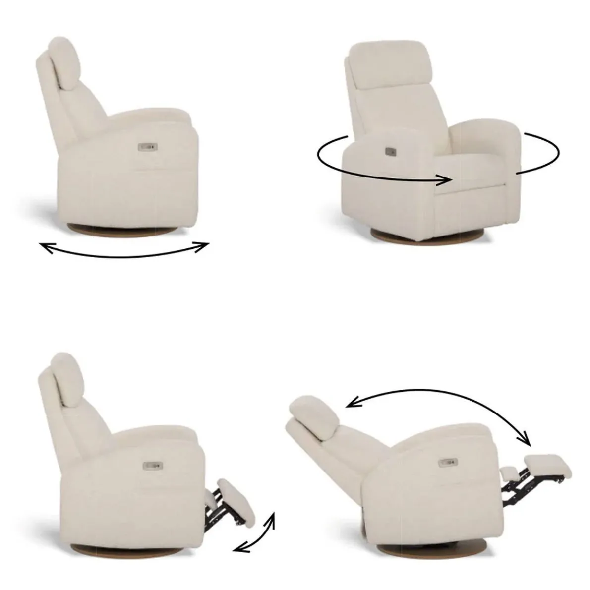 The new Hailey reclining chair with an adjustable winged headrest features a unique, enveloping design that provides a sense of security and optimal comfort. The manual version offers all the same amazing features of the other models (Nelly & Arya). Its exclusive foldable or collapsible winged sides provide additional support by keeping the head in a stable and ergonomic position — perfect for long nights with your newborn or moments of relaxation.