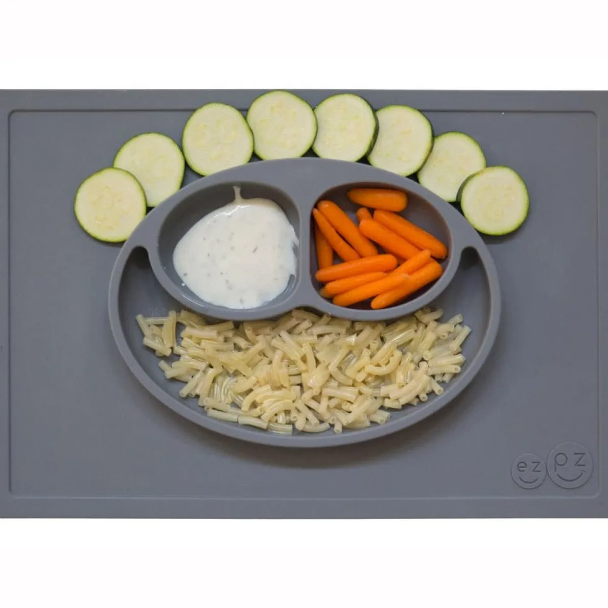 Introducing the all-in-one plate + placemat.The FDA-approved and CPSIA certified Happy Mat is made from high-quality silicone that is non-toxic, PVC, BPA and phthalate free (so it’s safe for growing bodies). Another bonus? It suctions directly to the table, making it nearly impossible for tiny hands to tip over.