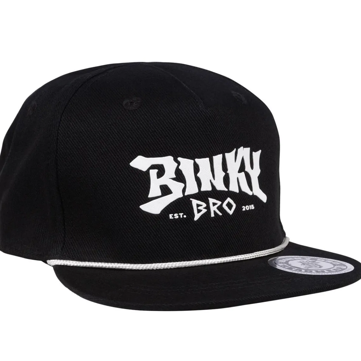 - The Camden snapback hat has black paneling and features a branded “BinkyBro” embroidered logo. This hat is 100% cotton.