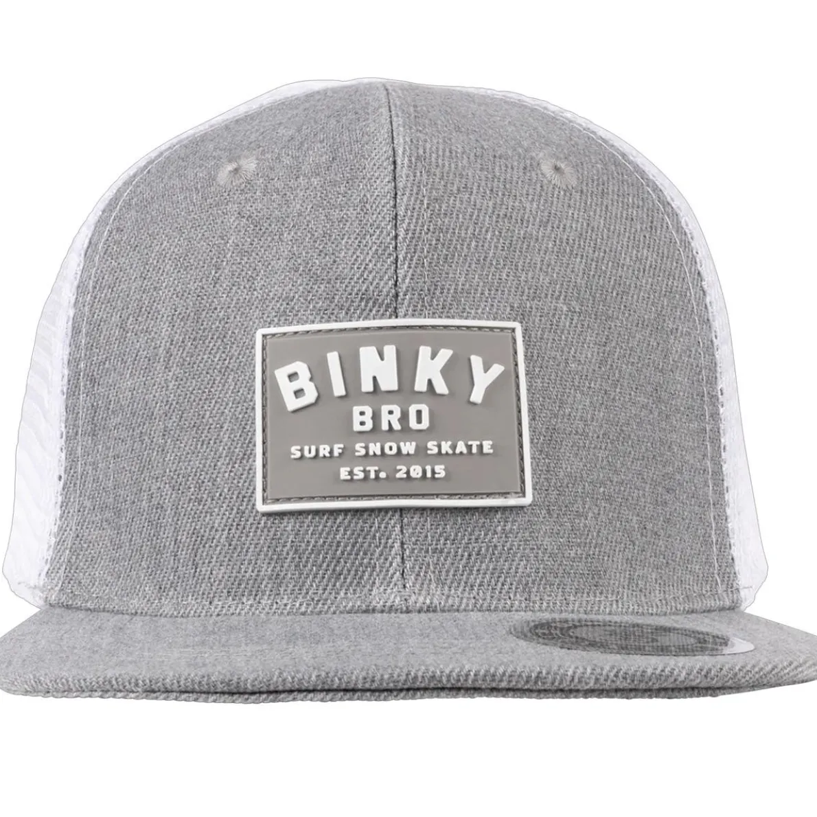- The Benny snapback hat has grey front paneling and white mesh for the back paneling. The front logo is an BinkyBro Surf Snow Skate patch. This hat is 100% polyester.
