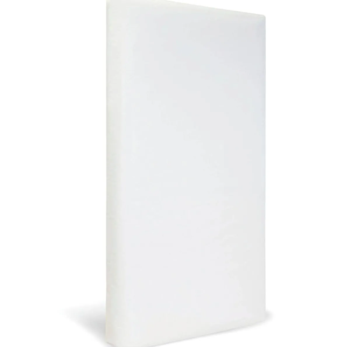 Changing the sheets on a crib mattress can be a challenge. The Super Lightweight Crib Mattress makes changing the sheets a breeze! At 7 lbs, you can get the job done easily, so it’s no hassle to give your baby a clean crib. Waterproof + Seamless edges Lullaby Earth crib mattresses are truly waterproof (unlike many “water resistant” models). They are even waterproof on the edges where most crib mattresses have seams. Just wipe up any mess with regular soap and water and you are good to go! A waterproof mattress makes for a more hygienic crib environment. By keeping fluids out of the mattress, there is a lower likelihood of mold or mildew growth. The waterproof surface doubly functions as a dust mite / bed bug barrier and is so pure that it even meets food contact standards! Firm Support Firmness is one of the most important features in a crib mattress. A soft crib mattress can sag, making it much more difficult for babies to shift positions or roll over if they are uncomfortable or having trouble breathing. In addition to a firm design, strong side and edge support adds structural stability, making the Lullaby Earth mattress an excellent choice for toddler beds.