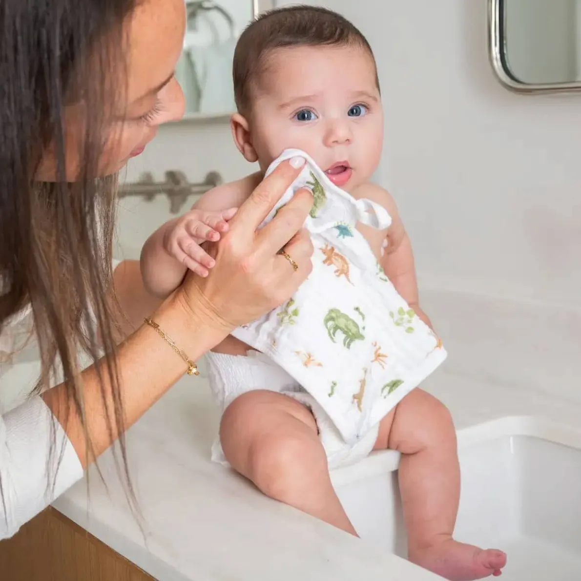 Hooded towels make looking cute + staying toasty after baths much easier! Made of plush cotton terry with a cotton muslin hood, the towels are super absorbent, smooth on their skin, and stay soft wash after wash.