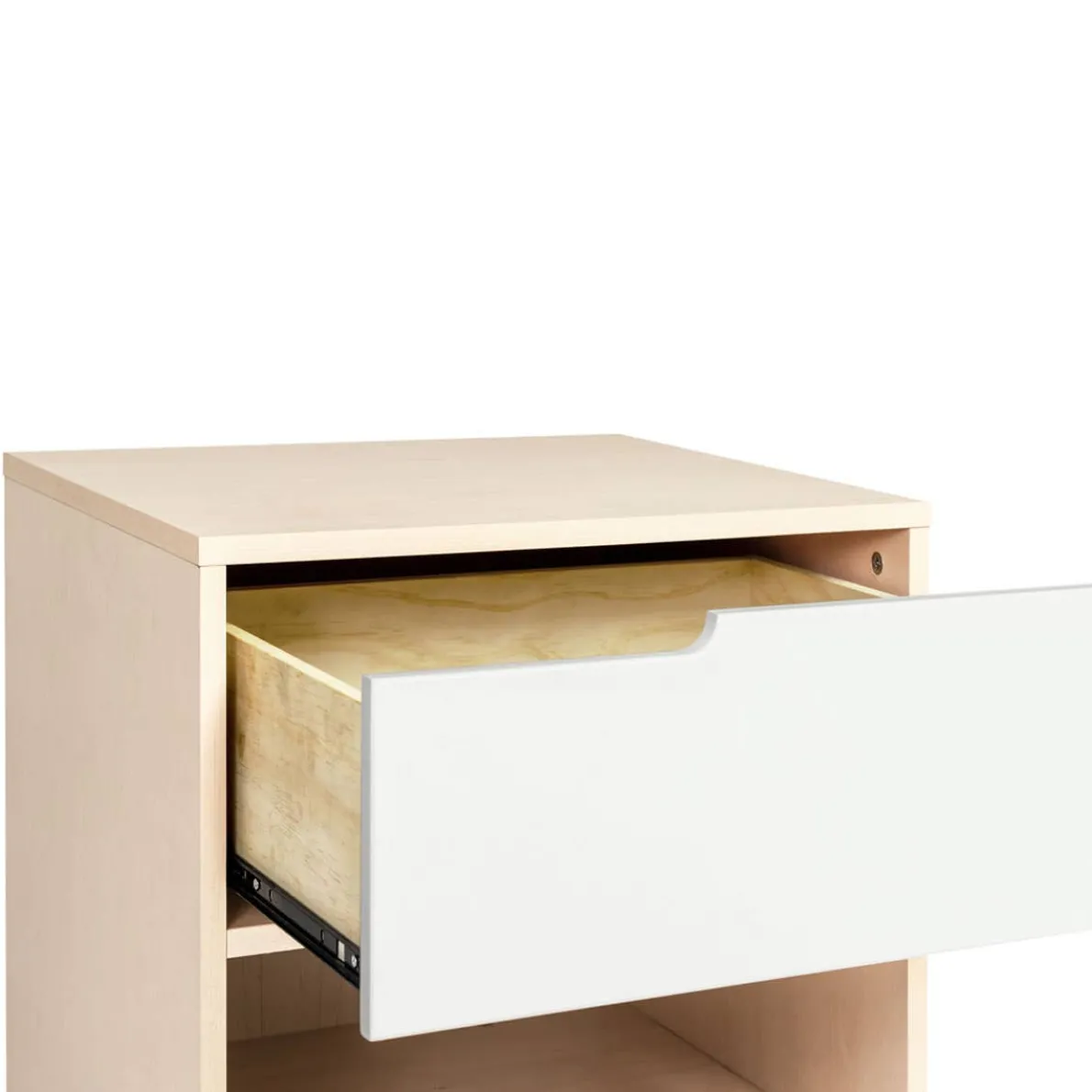 Keep the important things within arm’s reach with the Hudson Nightstand. Mirroring the style of the beloved Hudson Crib, with playful angular feet and a modern silhouette the nightstand is made with eco-friendly, non-toxic materials. The smooth-opening drawer is the perfect place for babe to keep their treasures safe, while the cubby style bottom shelf provides storage for buddies, books and toys; oh my! Two optional USB ports at the back of the nightstand keep charging devices easily within reach. Team the Hudson Nightstand with any of the Babyletto Kids range for a stylish and on-trend big kid room.