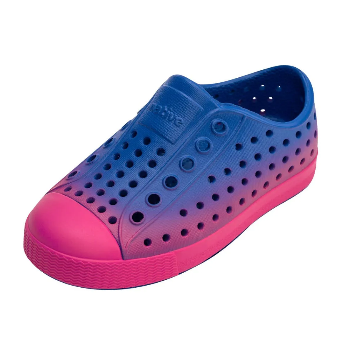 The sweetest pair of Jeffersons are now in a bold ombre print. These shoes boast the same water-friendly, shock-absorbent, odor-resistant, easy-to-clean qualities as our classic Jefferson. But are made with Sugarlite™, our sugarcane-based EVA material that produces less greenhouse gas emissions than traditional EVA.