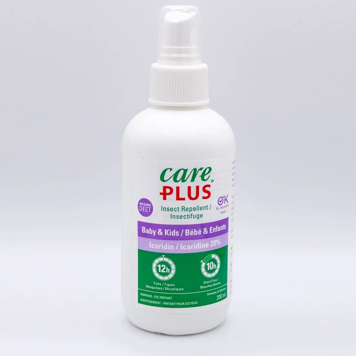 Icaridin repels insects and makes them less likely to bite. It works in the same way as DEET by blocking the insect’s sense of smell to the presence of humans. Care Plus Icaridin 20% provides 12 hour protection against mosquitoes and ticks, and 10 hours of protection against black flies. Studies show that Care Plus Icaridin at a 20% concentration repels mosquitoes and ticks at least as well as DEET 30% and provides longer-lasting protection.