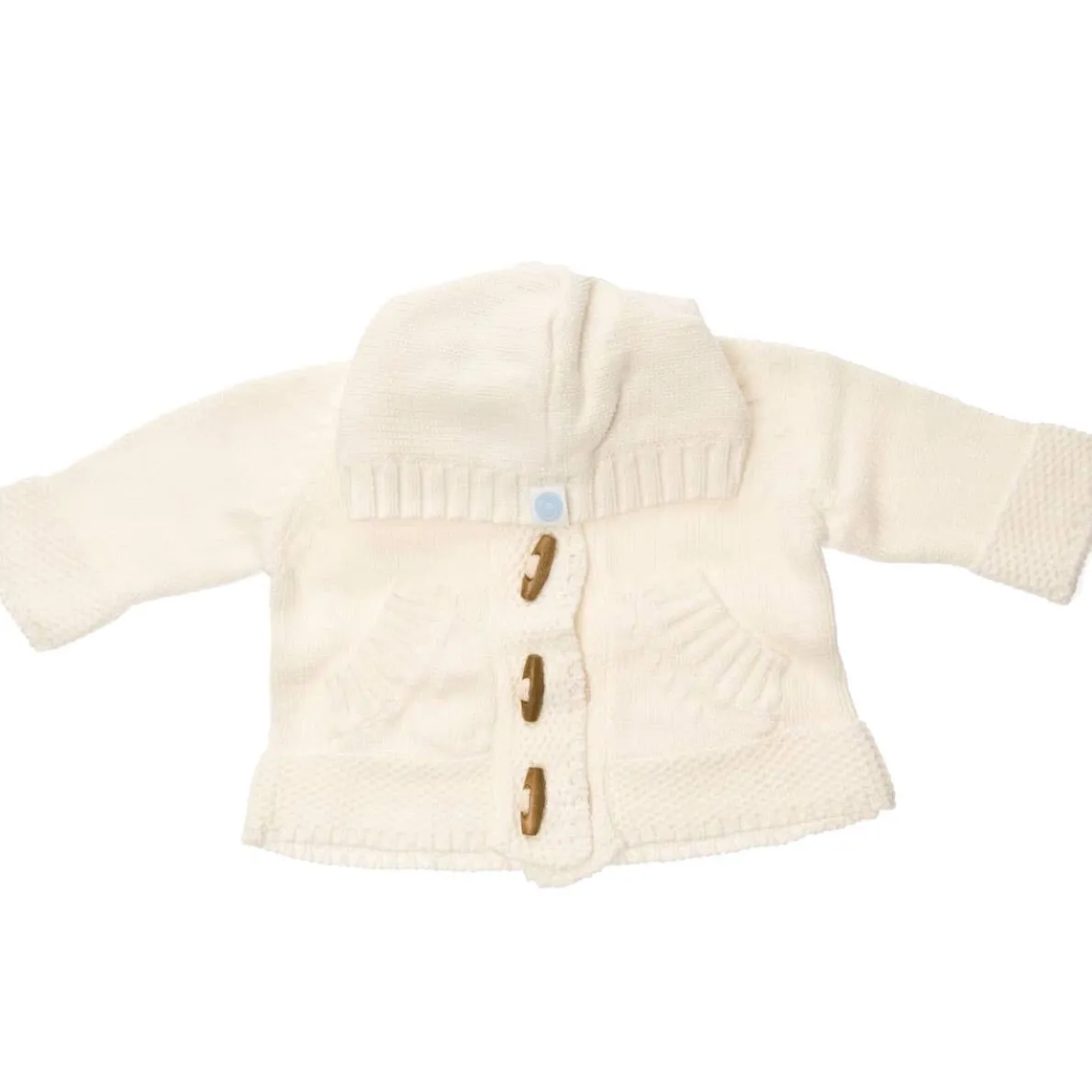 Hoodie’s featured in 100% cotton knit with extra softness for baby’s skin. Knit lined hood and wood toggle vintage buttons