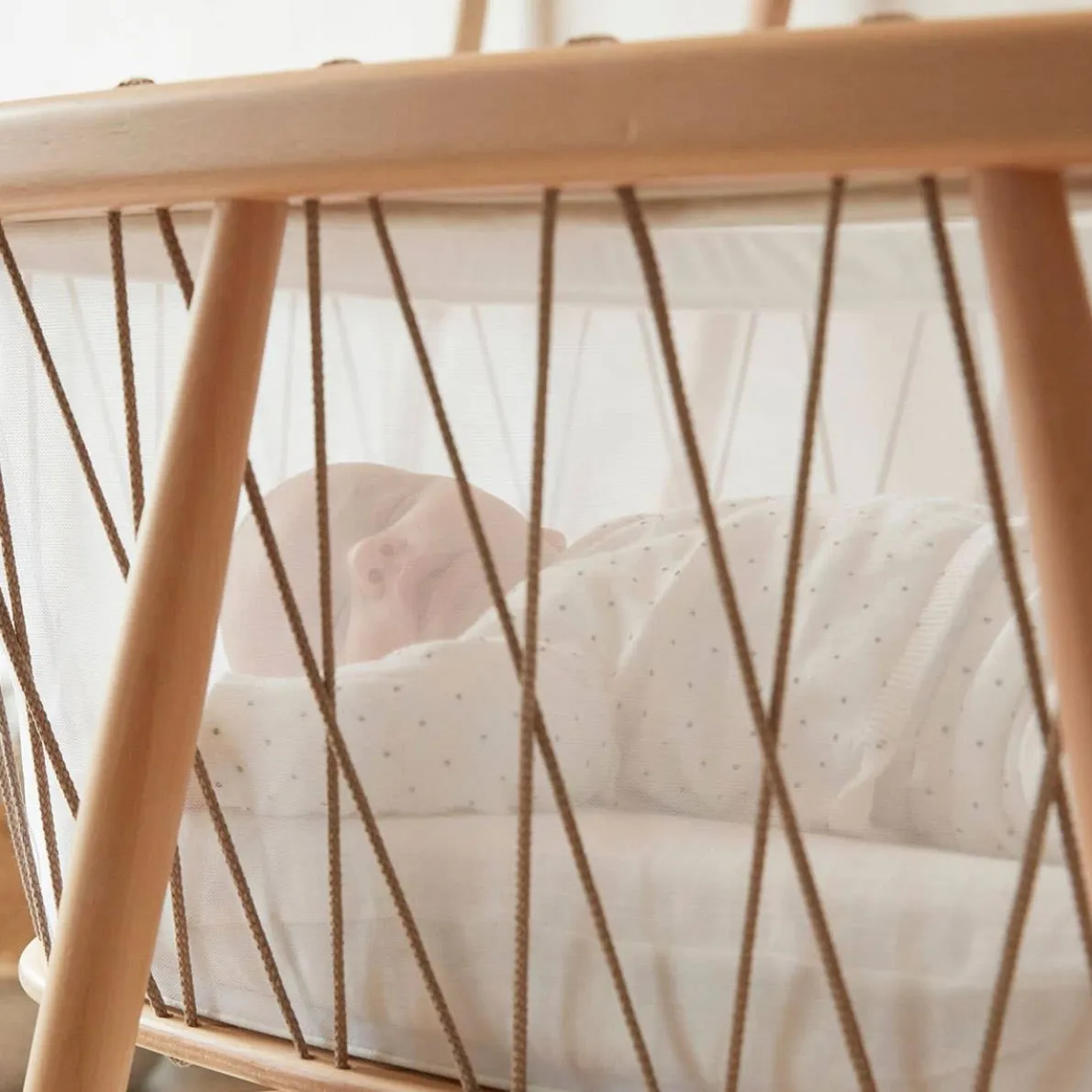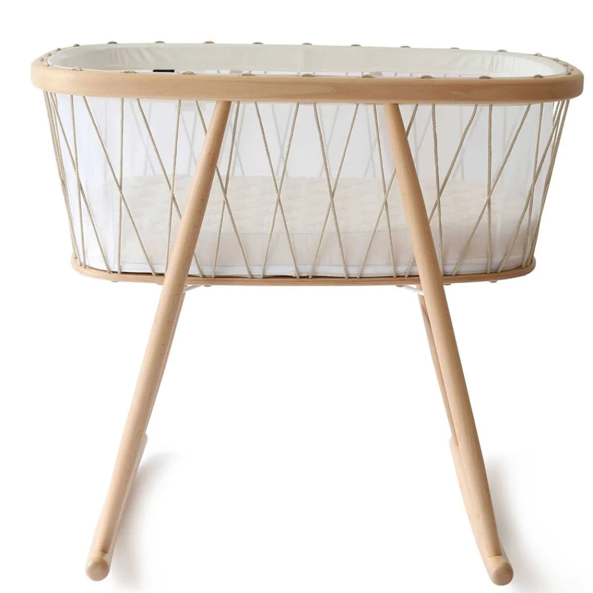 The design of the KUMI combines tradition and modernity. It retains the millenary lateral swing, a delicate movement that helps babies fall asleep, while sketching minimalist and contemporary lines, thanks in particular to the laces that surround it, which gives it both lightness and safety.