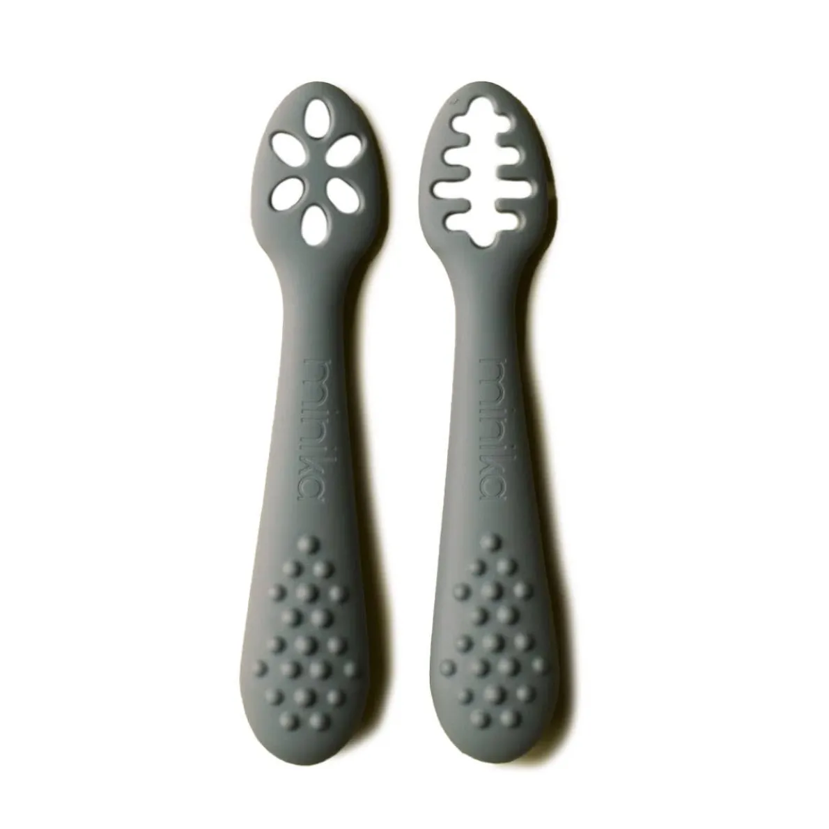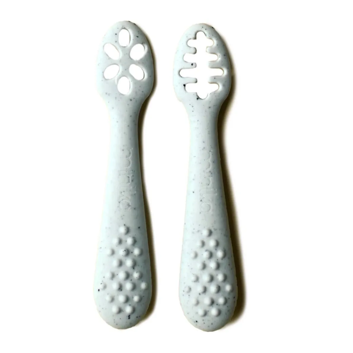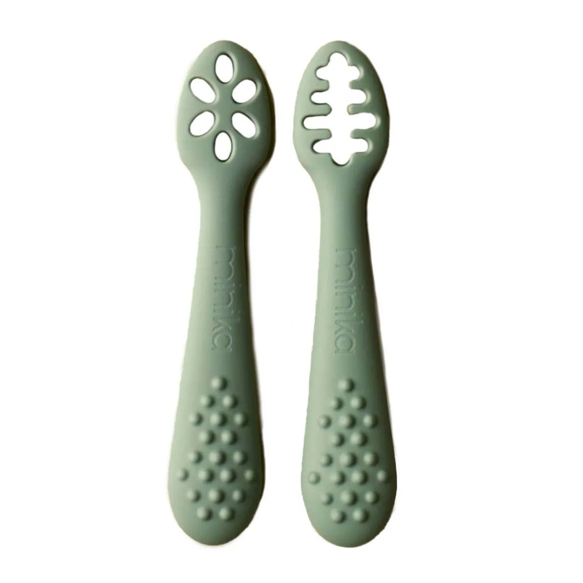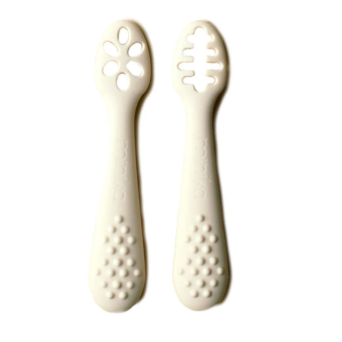 Perfect for little ones starting to eat solids, these 2 learning spoons make it easy to pick up food thanks to their slotted design. Made from textured silicone, they are easy to hold and can even be safely chewed.