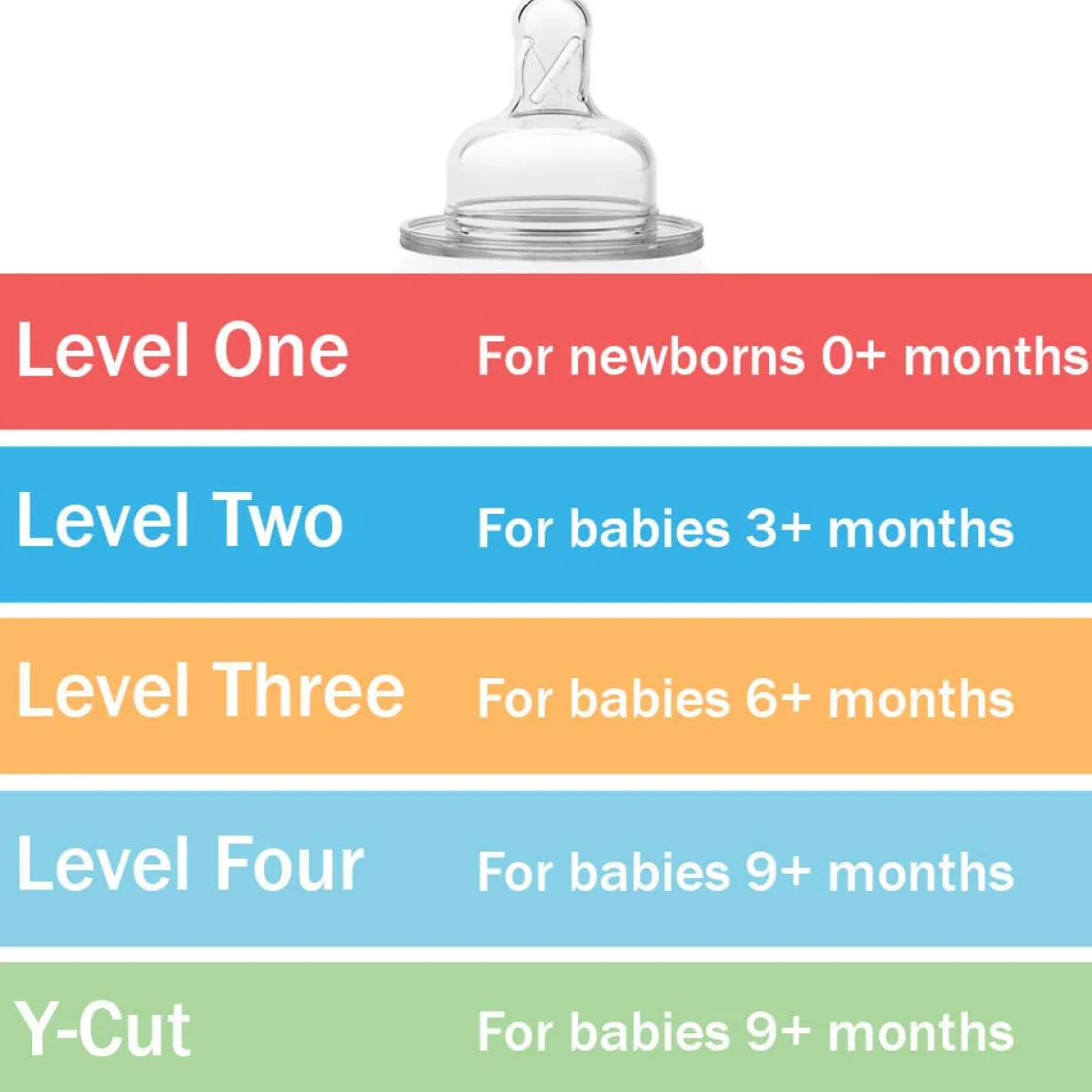 - Each nipple level provides a different flow rate