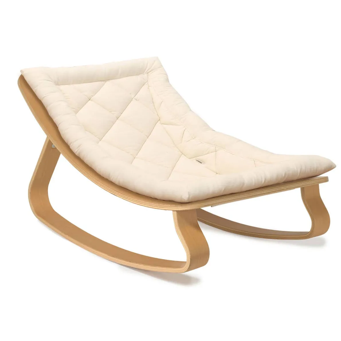 An essential from birth to about 7 months, the LEVO rocker fits perfectly into your home. Its multi-ply beech wood construction and design look are unlike any other baby furniture. Its natural rocking motion adapts to the child’s movements, and does so gently.