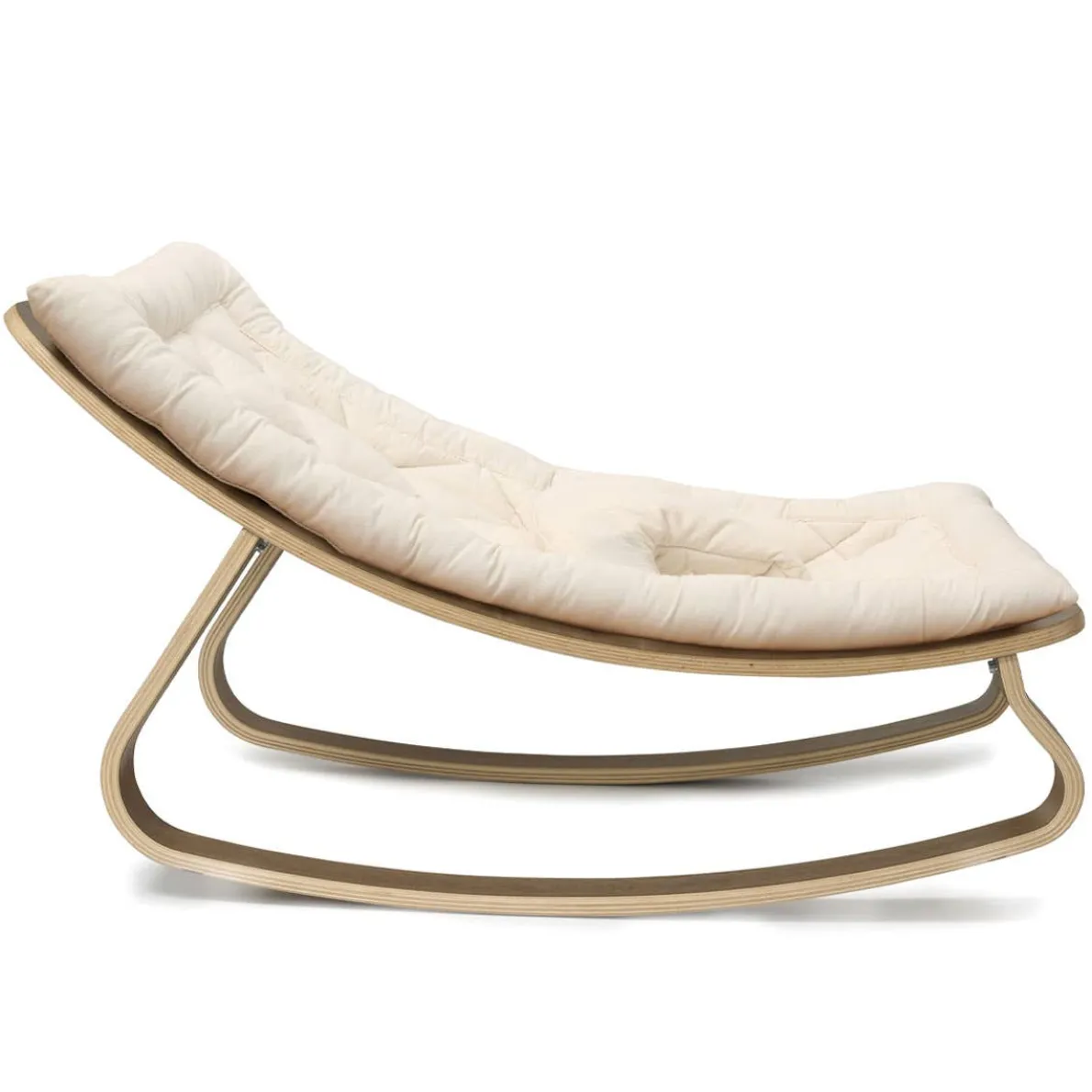 An essential from birth to about 7 months, the LEVO rocker fits perfectly into your home. Its multi-ply wood construction and design look are unlike any other baby furniture. Its natural rocking motion adapts to the child’s movements, and does so gently.