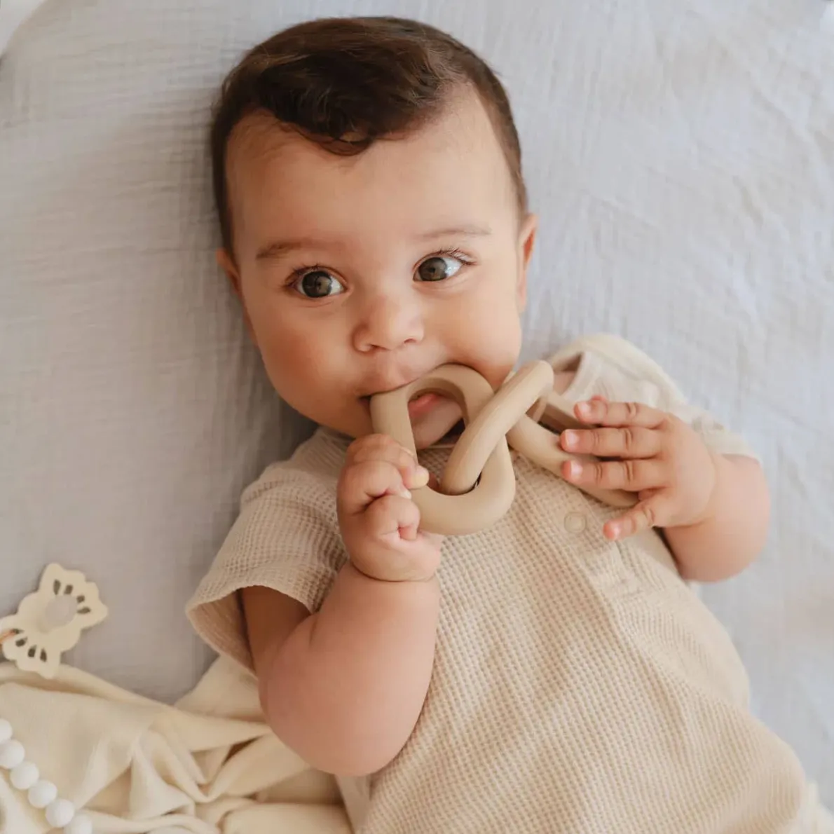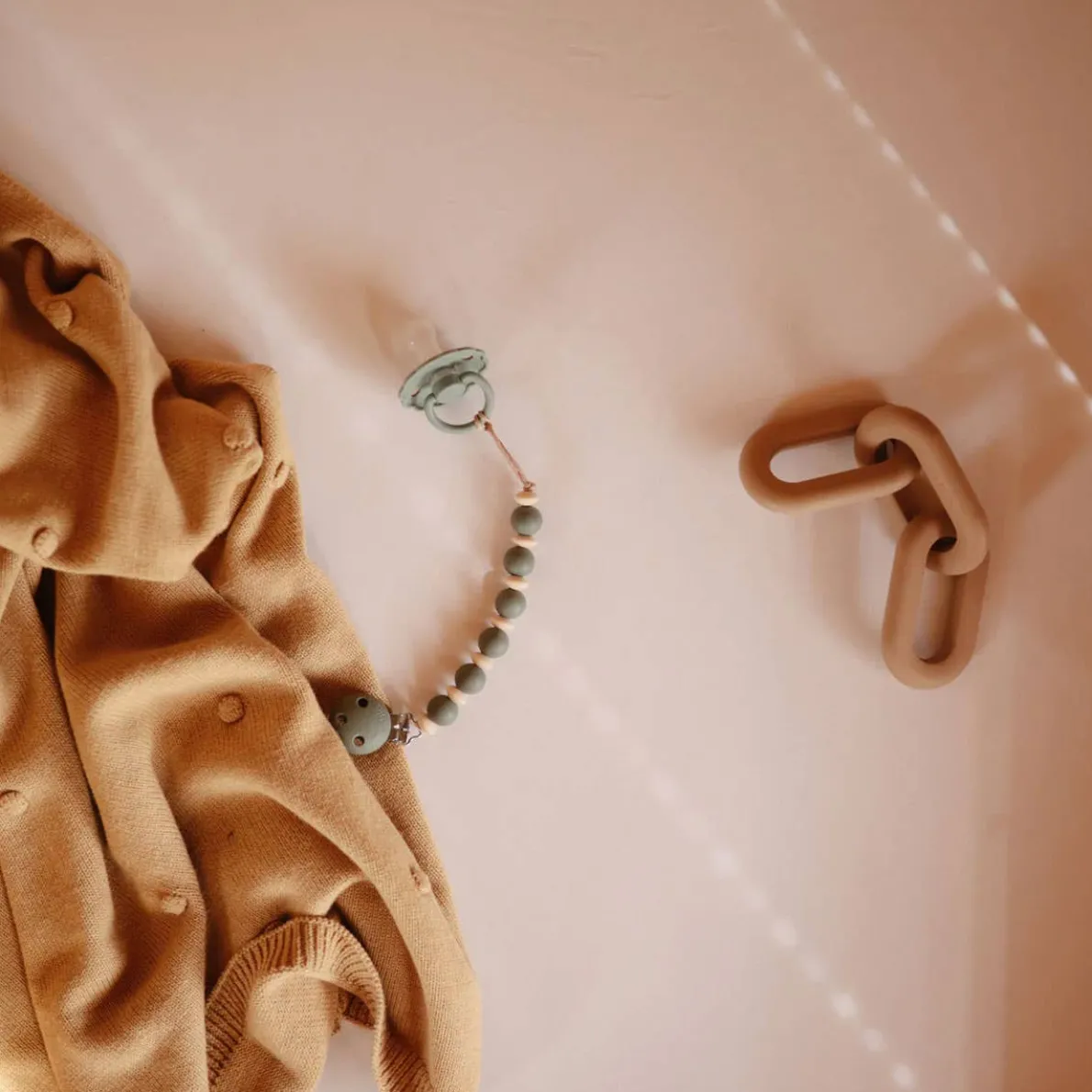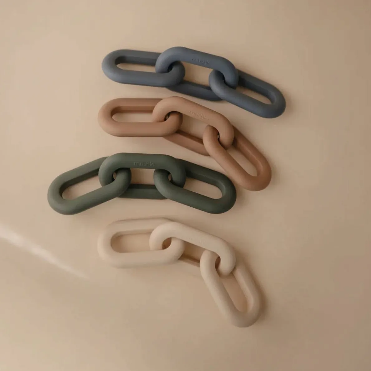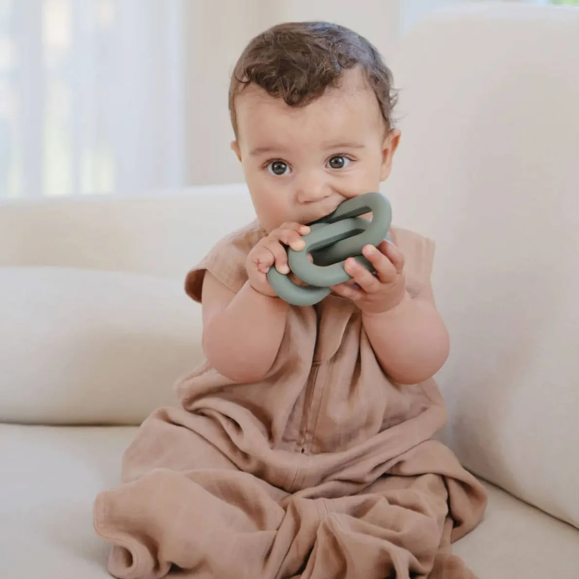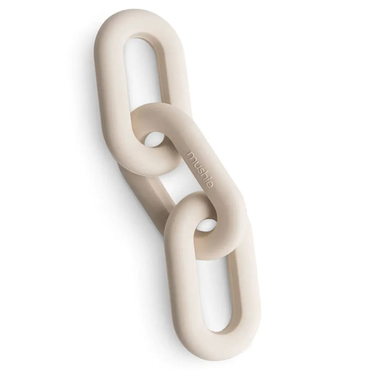 Offer comfort and relief with a teether designed to soothe sore gums throughout the entire teething journey. Made from 100% food-grade silicone, Mushie teether is easily held by tiny hands. With three connecting links that mirror modern design aesthetics, parents can maintain their personal style while littles enjoy a practical and playful toy.