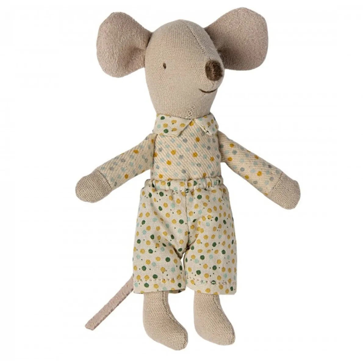 A classic Maileg item. This mouse is ready for hours of play and sleeps tight in the little matchbox. The clothes and bedlinen are made of soft fabrics with unique prints in beautiful colors. Extend the story by adding accessories to the play