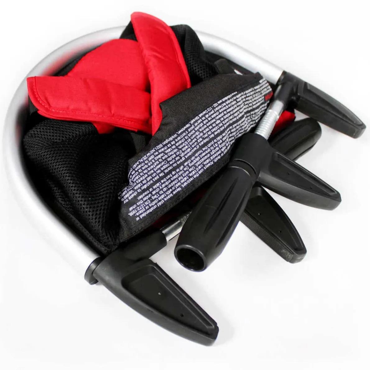 Get a taste of this! A smart & stylish portable high chair. The brushed stainless steel frame and robust, easy care fabrics are not only strong and durable but also visually appealing. Every lobster comes in a compact, custom fitted carry bag so that it can travel anywhere you need it. The wide, resilient food tray slides securely under the clamp grips to protect the table surface as well as keep your food surface clean.