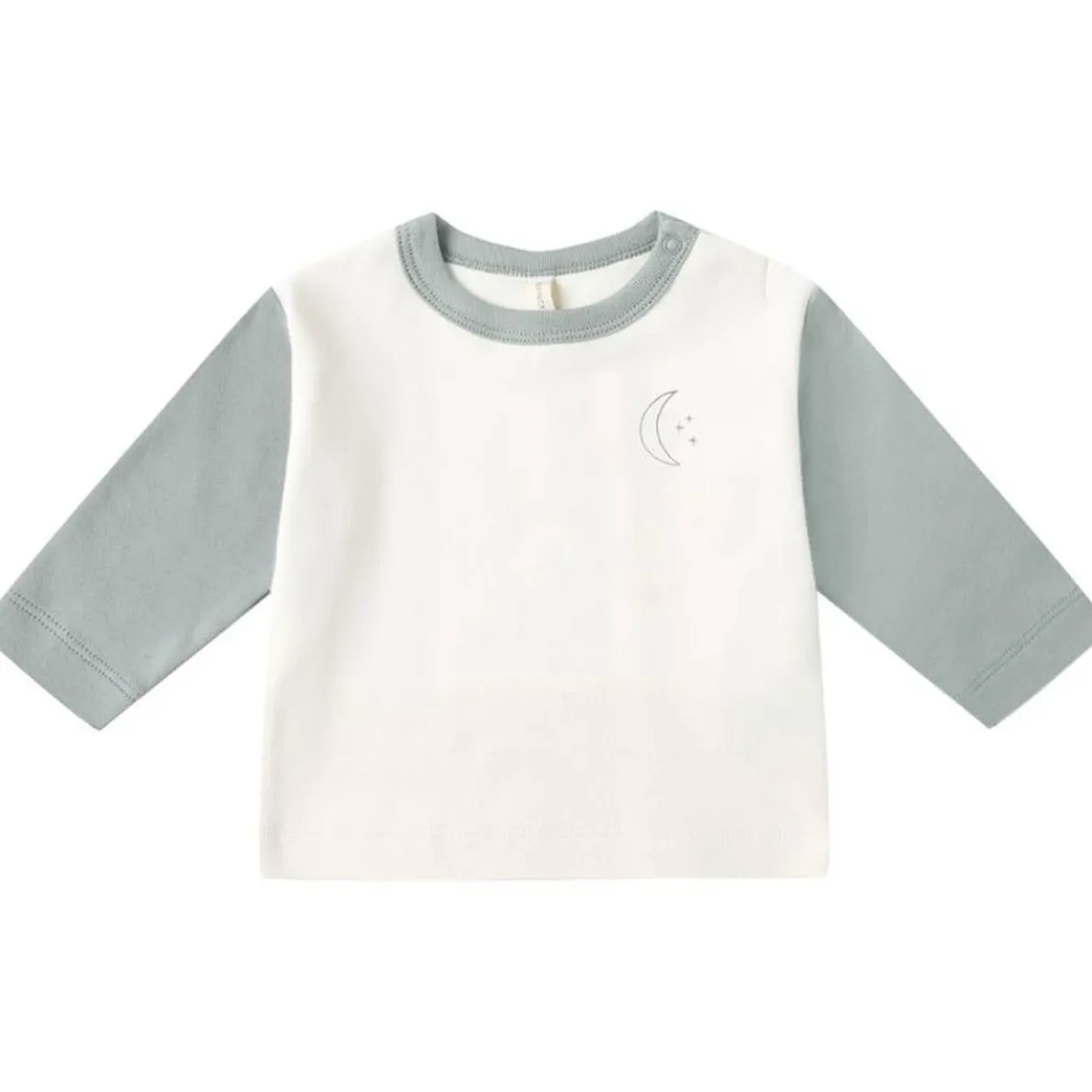 Quincy Mae Long Sleeve Raglan Tee, made from soft organic brushed cotton, features contrast sleeves and neck ribbing. Designed with a relaxed fit for everyday comfort.