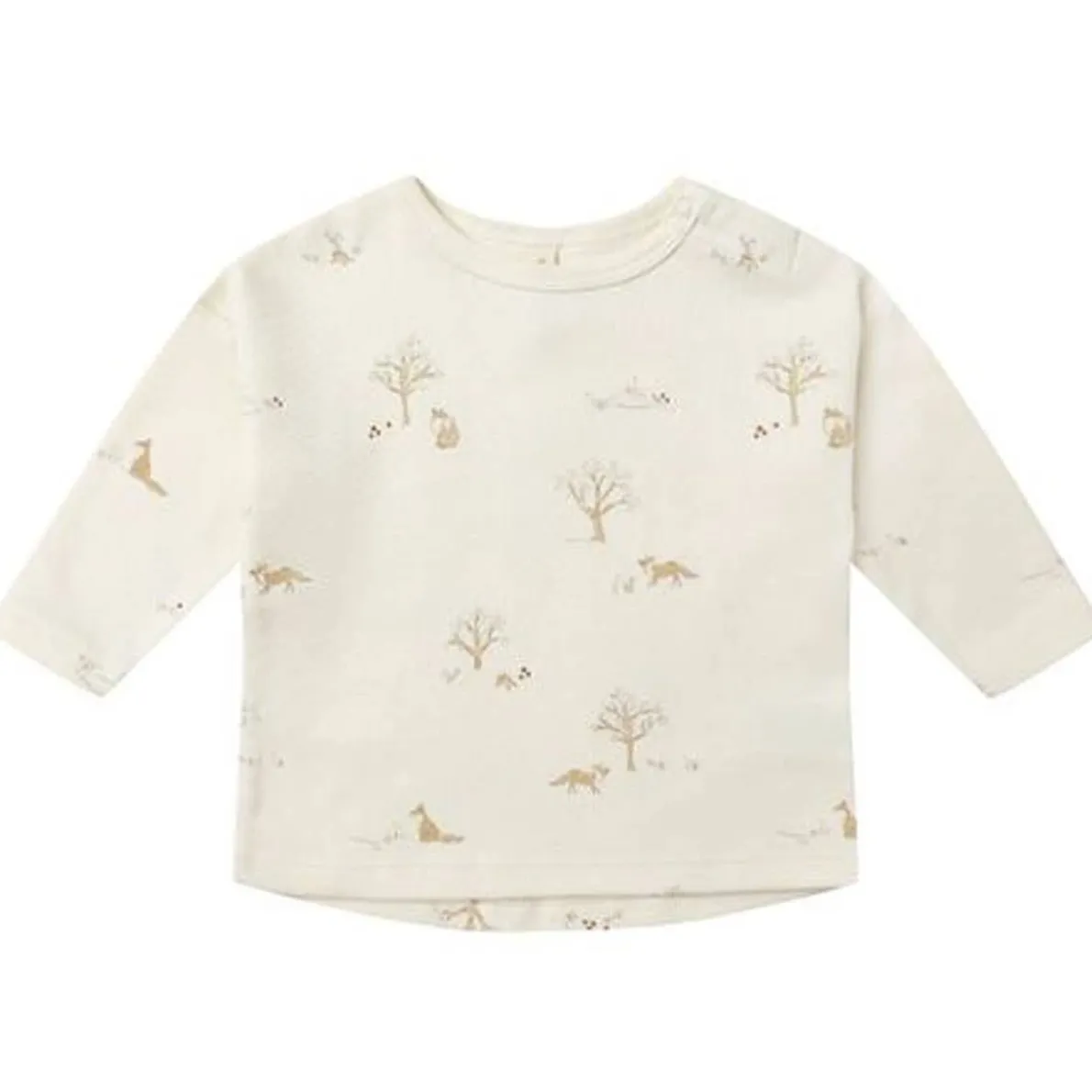 Quincy Mae Long Sleeve Tee is crafted from soft organic brushed cotton for all-day comfort. Featuring a shoulder snap on sizes 0-3M – 18-24M for easy wear. Pair with the Drawstring Pants for a cozy, coordinated look.