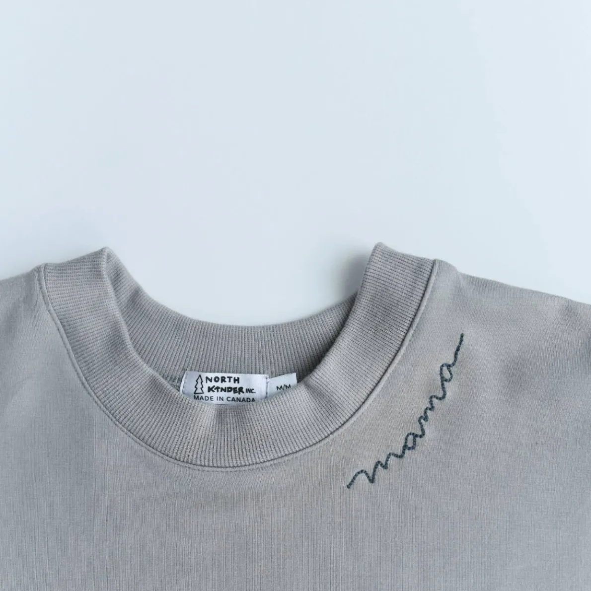 With a special collaboration with Rebecca Robertson, the newest addition to NK mama + baby collection is here! This modern crew neck style features the signature “mama” embroidery in stitch along with ribbed trim on the neckline and cuffs. Made of sustainable soft bamboo fleece fabric, cuddle time with baby will be cozier then ever!
