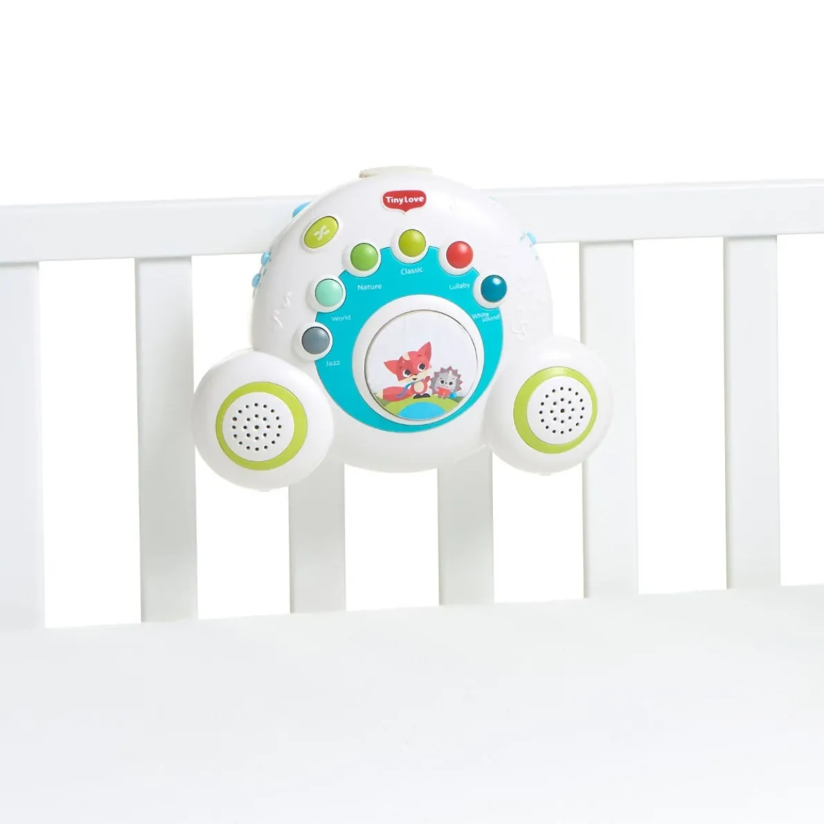 Fetching Meadow Days™ design of the groovy Soothe ‘n Groove Mobile™. Melodies to grow with!