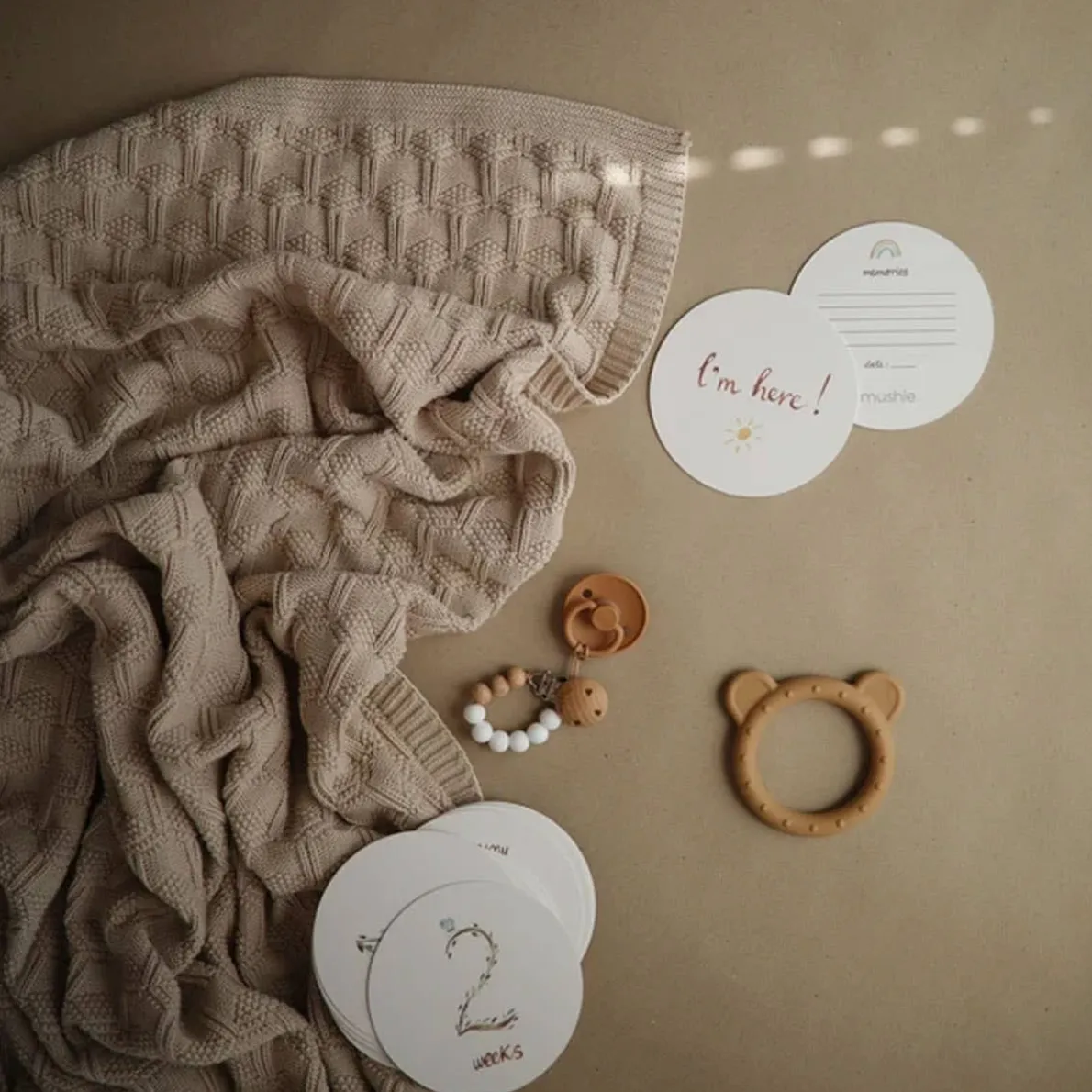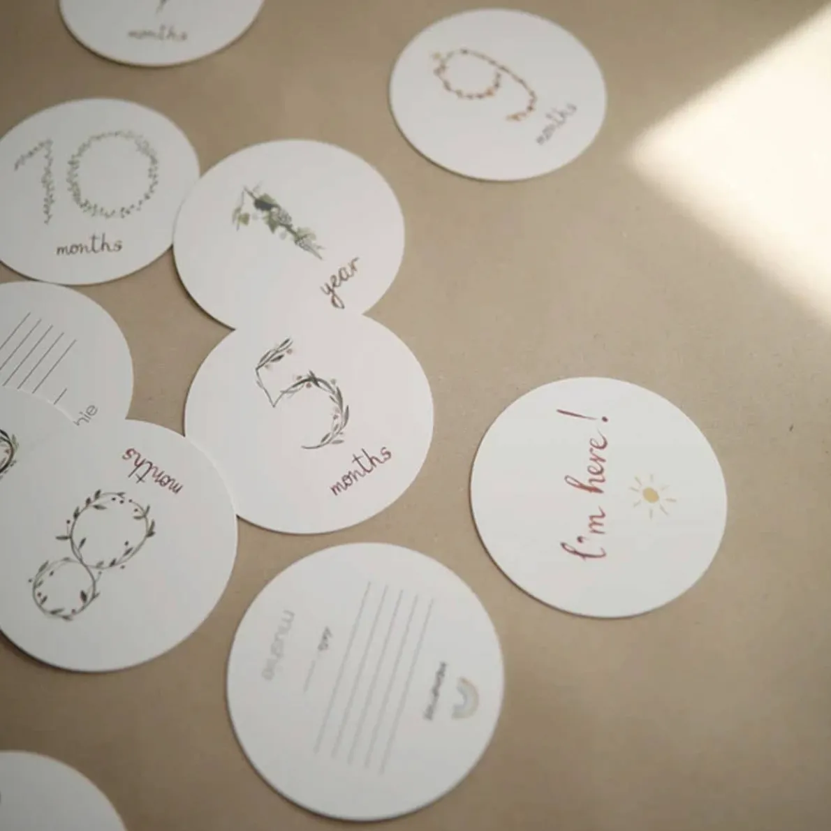 Document the growth of your new baby with this set of 16 beautifully-illustrated milestone cards, lovingly designed in Sweden. Each double-sided card displays whimsical watercolor designs and dedicated space for you to capture memories, thoughts, and notes to your baby as they grow.