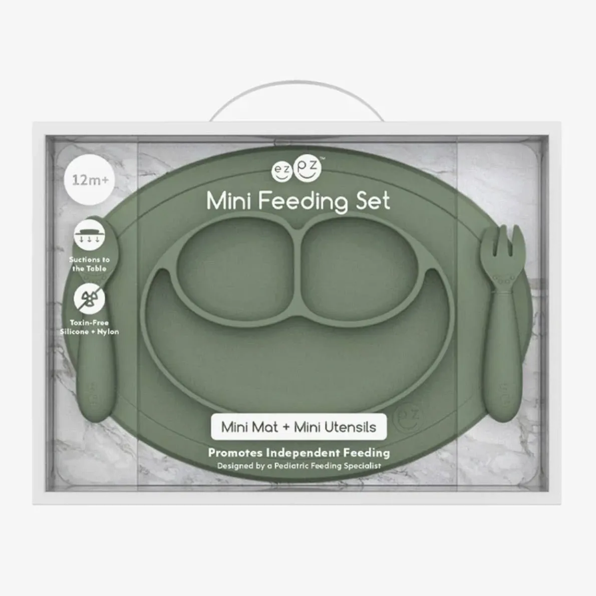 As your infant transitions to toddlerhood, they are ready to start practicing new mealtime milestones. They are eating a balanced meal with different food groups and are learning how to eat with a spoon (scooping) and fork (piercing). With the Mini Feeding Set (the Mini Mat, Mini Spoon and Mini Fork) ezpz provides all of the developmental tools you need for independent mealtime with your toddler