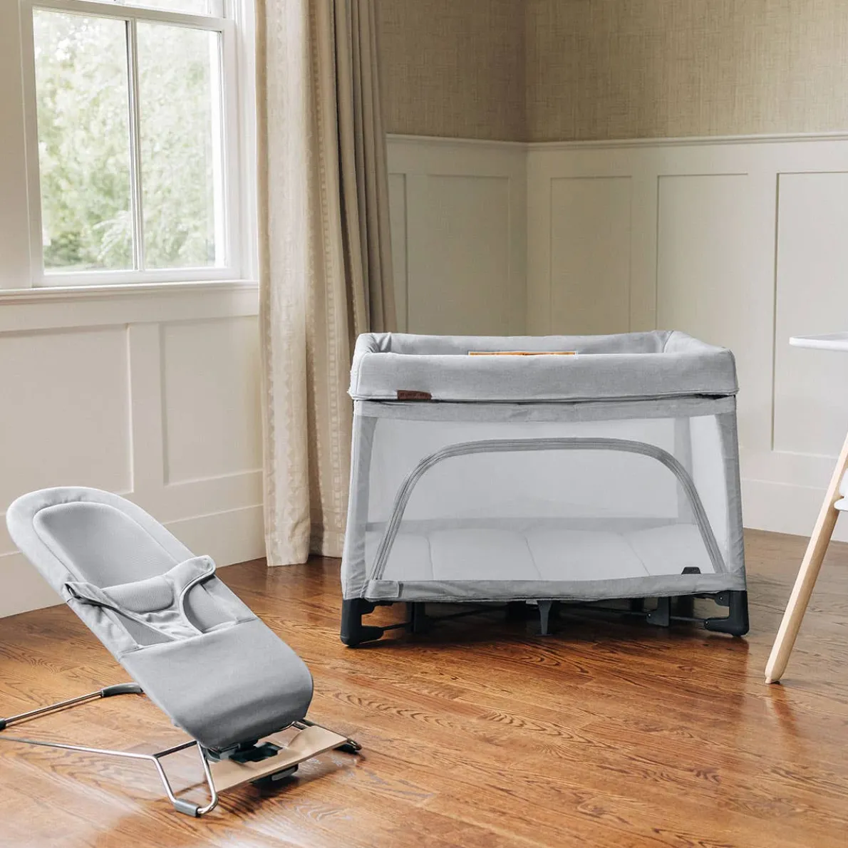 A cozy place to play or lay, the Mira was designed to soothe and comfort baby while keeping them close. Following their natural movement, the 2-in-1 bouncer and seat gently rocks to their rhythm from newborn to toddler.
