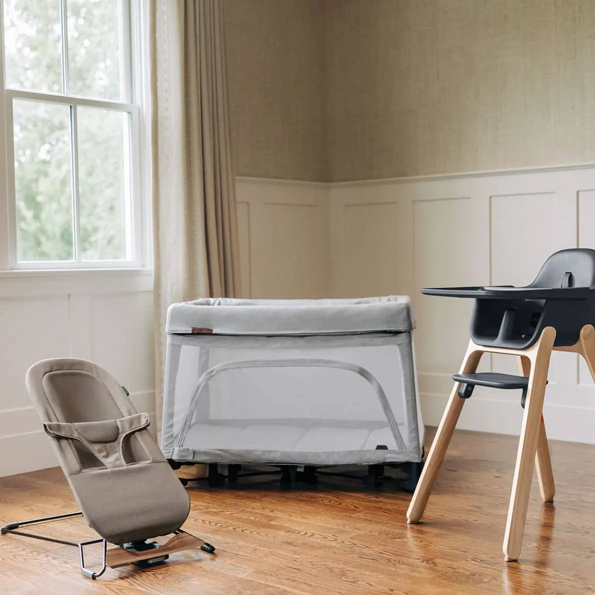 The MIRA 2-in-1 Bouncer will be available in 3 fashions: