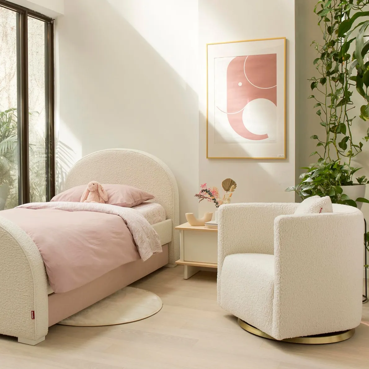 Comfortable. Compact. Curved. Monte Design Mitchell Swivel Chair offers brilliant swivelling ease so you can rotate between conversations, activities and scenery. Its small footprint is ideal for any space and works great in pairs.