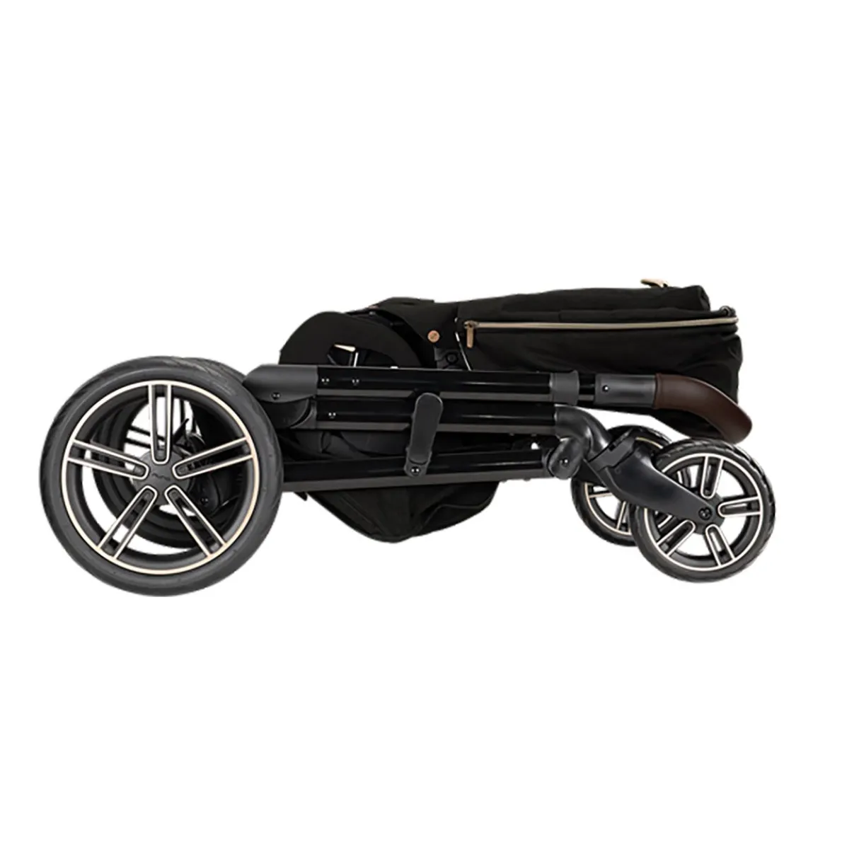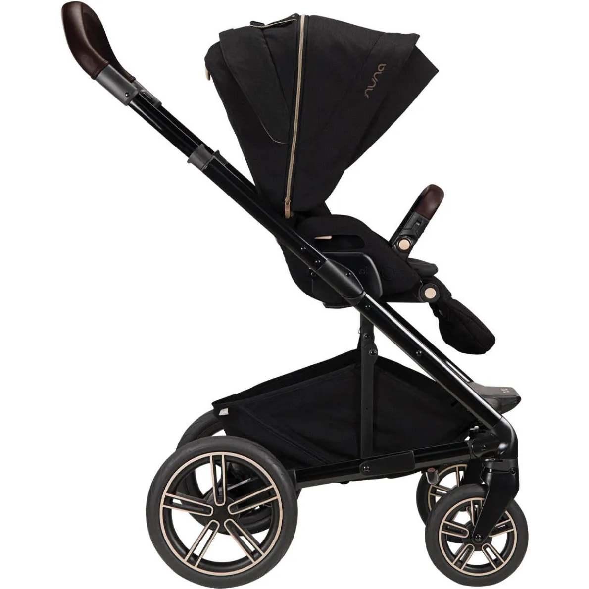 Nuna has elevated their vision and redefined classic style by including bold metals in this new fashion line. With the perfect balance of lustrous shine, Riveted radiates an overall luxurious expression. The Riveted style strikes a balance between hard and soft, edgy and sweet. They’ve coupled deep neutral colours with accent splashes, adding bronze and copper notes to lend unique signatures to a timeless fashion. Rich textures add depth to this luxurious collection. A glossy black outline and hints of copper give fluid motion to the Riveted style. Premium, bronze metallic YKK™ zippers, snaps, and rivets accent the tailored style of the Riveted line. To top things off, a soft, chocolate brown vegan leather incorporates a touch of warmth.