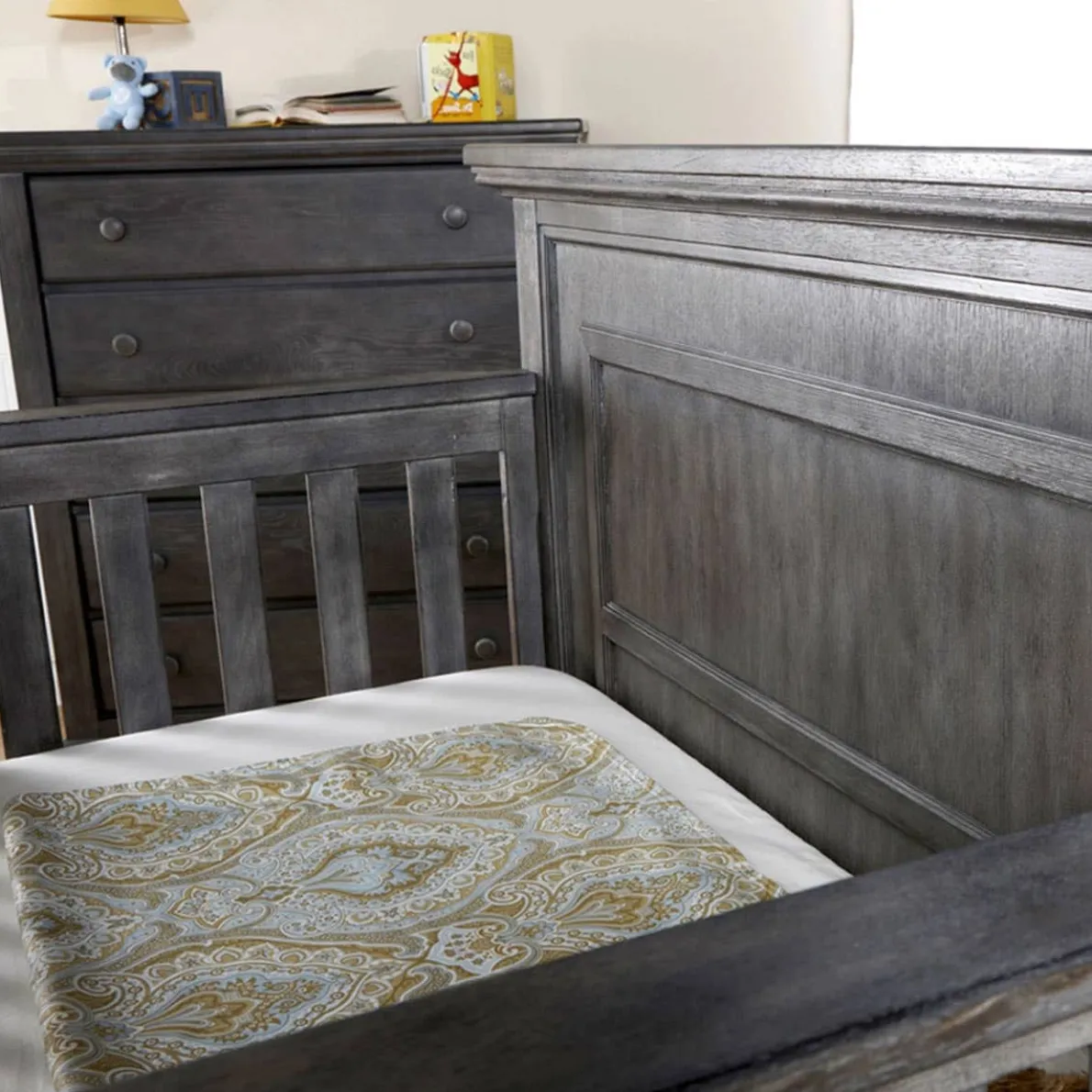 The Modena Collection has been designed to be artistically delightful as well as true to Pali’s commitment to both quality and safety. The Modena Forever Crib is crafted from sustainable wood and then finished with finishes that are regularly tested to ensure that they exceed the required standards for lead. This collection is complimented by a textured finish that is reminiscent of an antique style. It is available in Granite, a distressed gray finish, and Vintage White, a finish that is predominately white with grey highlights. Both of these finishes are lovely compliments to the traditional styling of the Modena Collection.