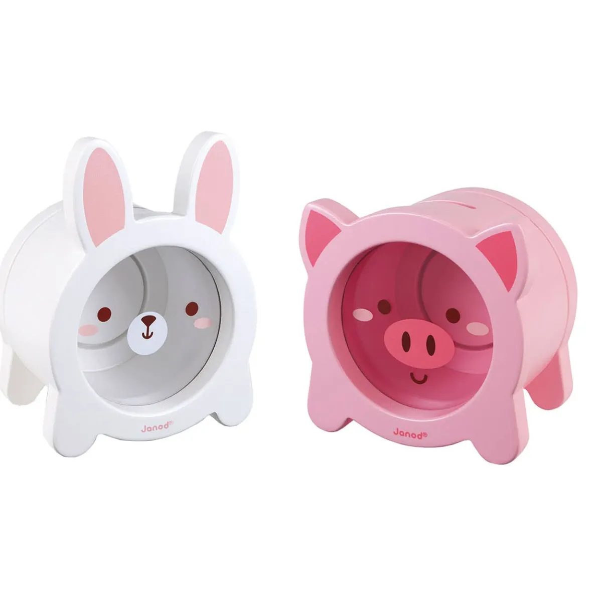 This little rabbit is a pretty wooden piggy bank that will help your child keeping his coins and banknotes throughout the year. Your child can then see his savings through the transparent section at the front. And it will be easy to get them back thanks to the magnetic opening located at the back of the animal. It will be a real pleasure to save money!