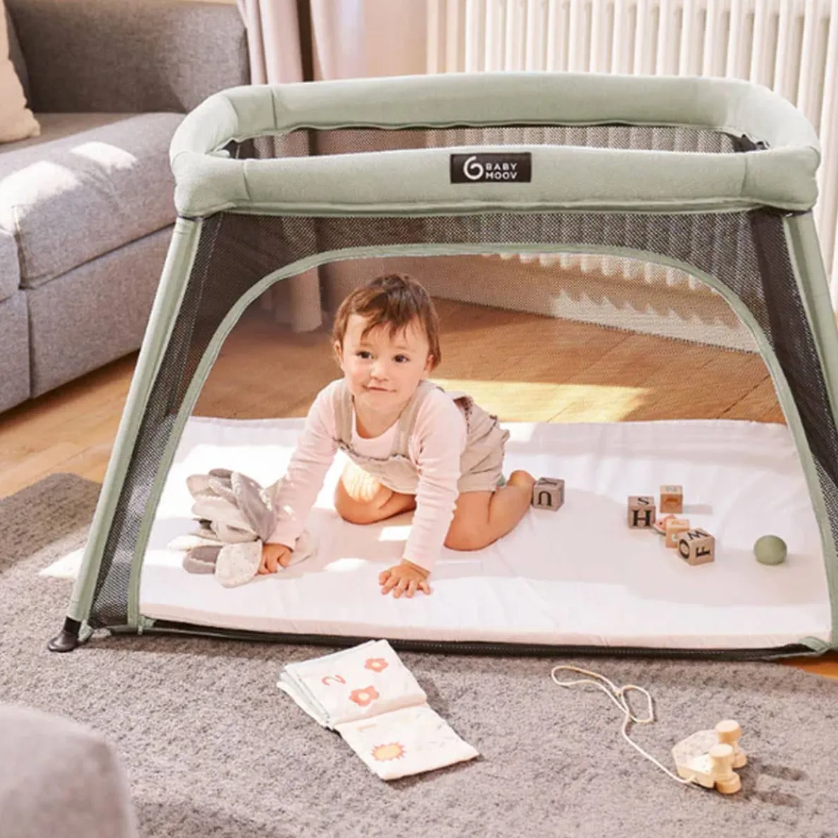 - 3-in-1 travel cot: baby crib (or use until the child can sit up, kneel up or stand up unaided), travel cot and play pen
