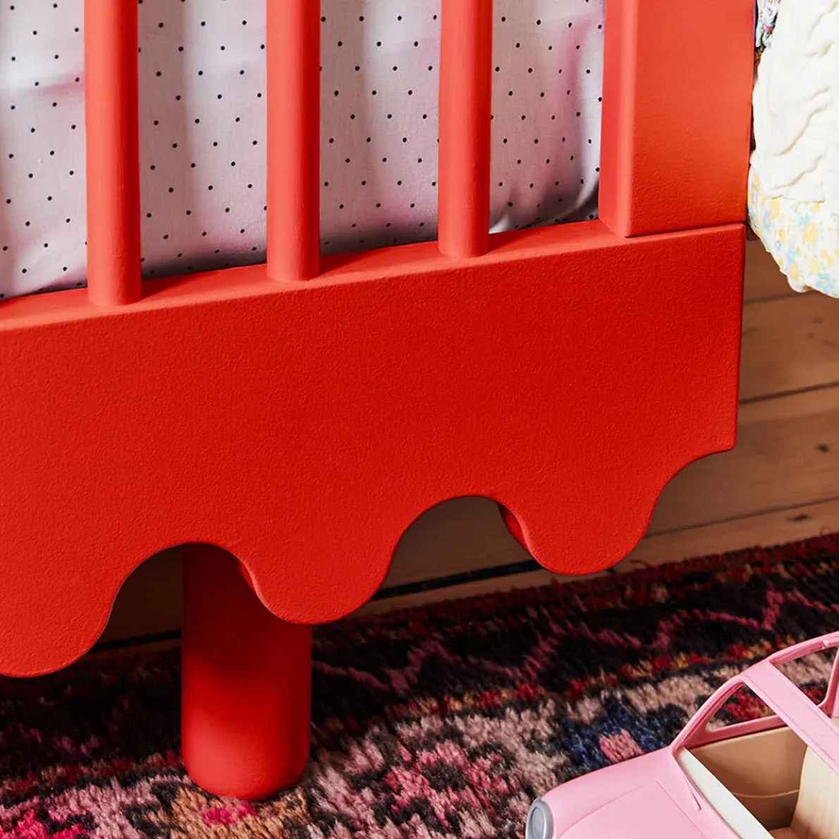 An ode to playfulness in furniture form. The Oeuf Moss Crib features a bold-yet-simple wave motif that’s an instant statement in any nursery, whether minimalist or maximalist. All four sides of the crib feature open & airy round spindles.