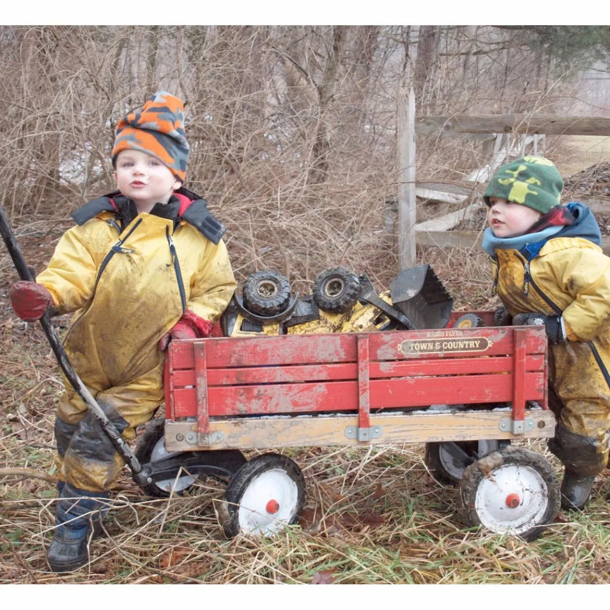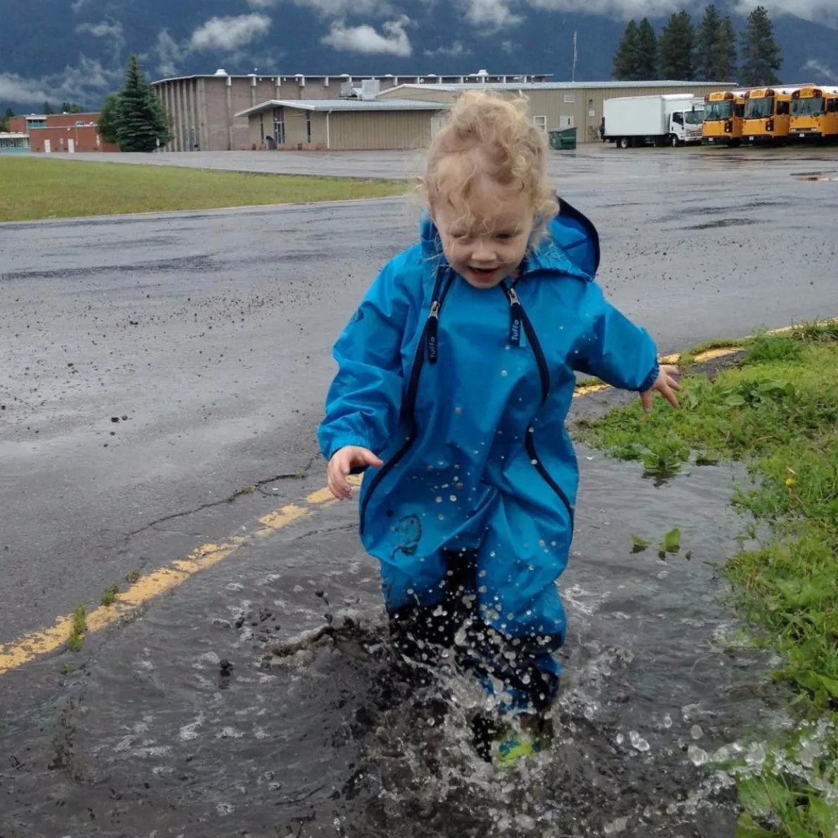 These unique waterproof coveralls offer toddlers full-body coverage and protection from the rain and elements.